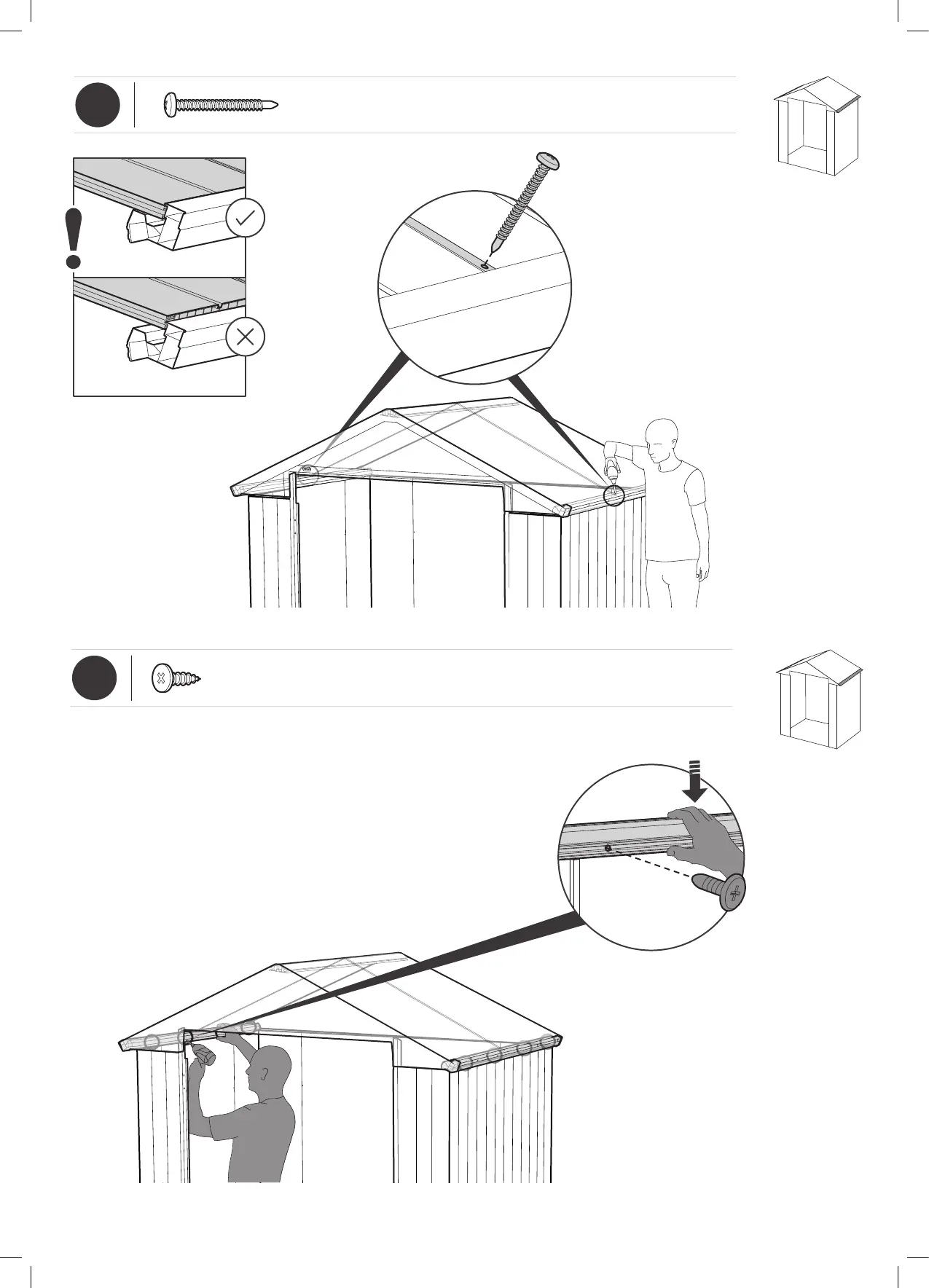 Keter DARWIN 6x4 - ROOF ASSEMBLY (cont.); Step 40: Secure roof overlap; Step 41: Secure roof panels