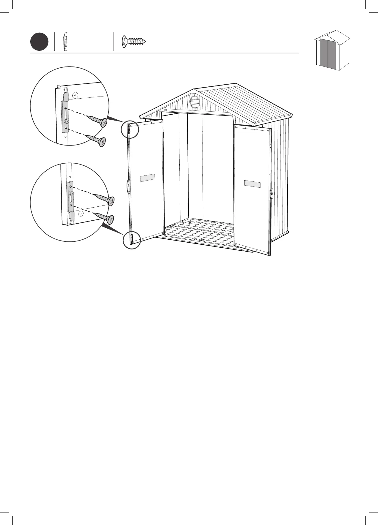 Tür | Als u merkt dat de schuur niet waterpas staat, gebruik dan vulplaten aan weerszijden van de schuur of deur | Nel caso in cui la casetta
