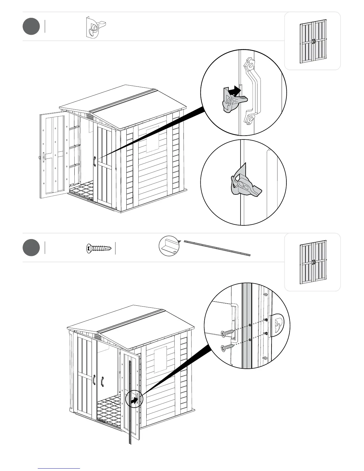 Keter FACTOR 6x6 - Right Door Handle and Component Assembly; Steps 27-28: Attach Right Handle and Mechanisms