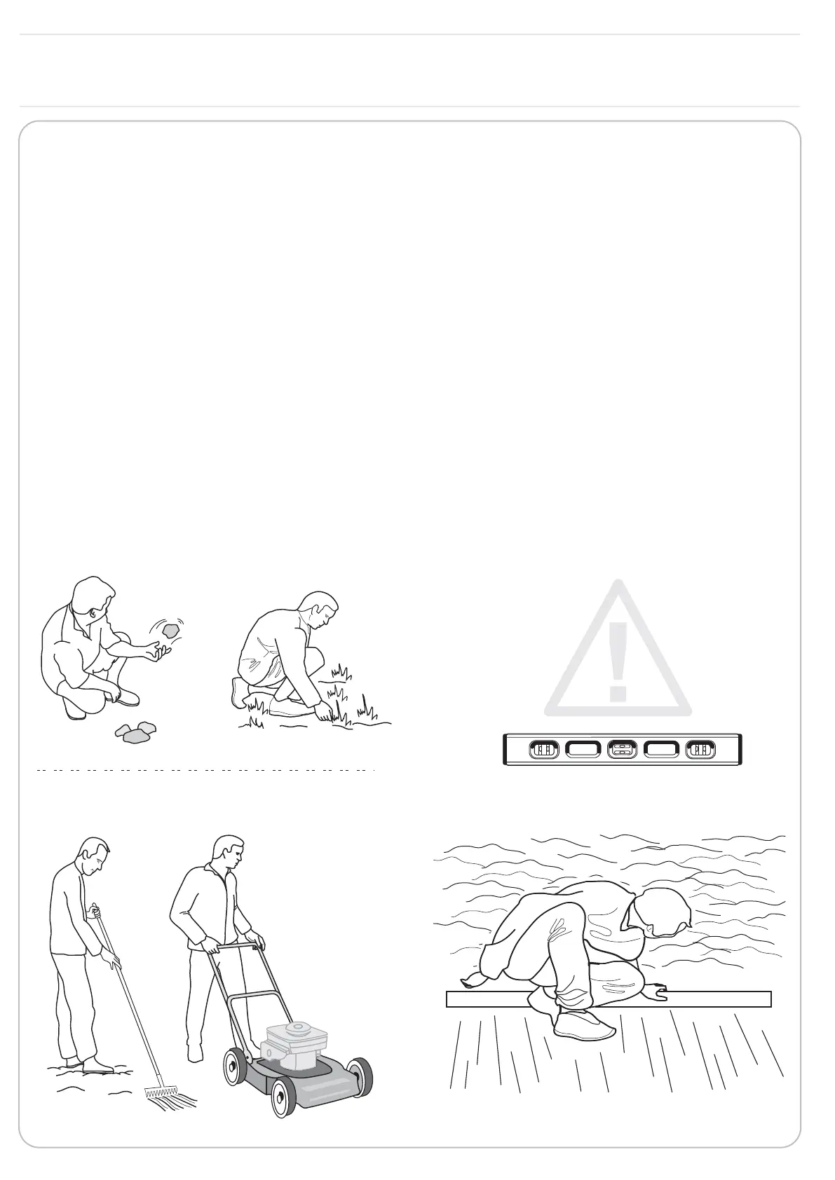 Clear area of stones | Remove all plants, roots and other obstacles | Rake the ground | Make ground level using a long, flat object