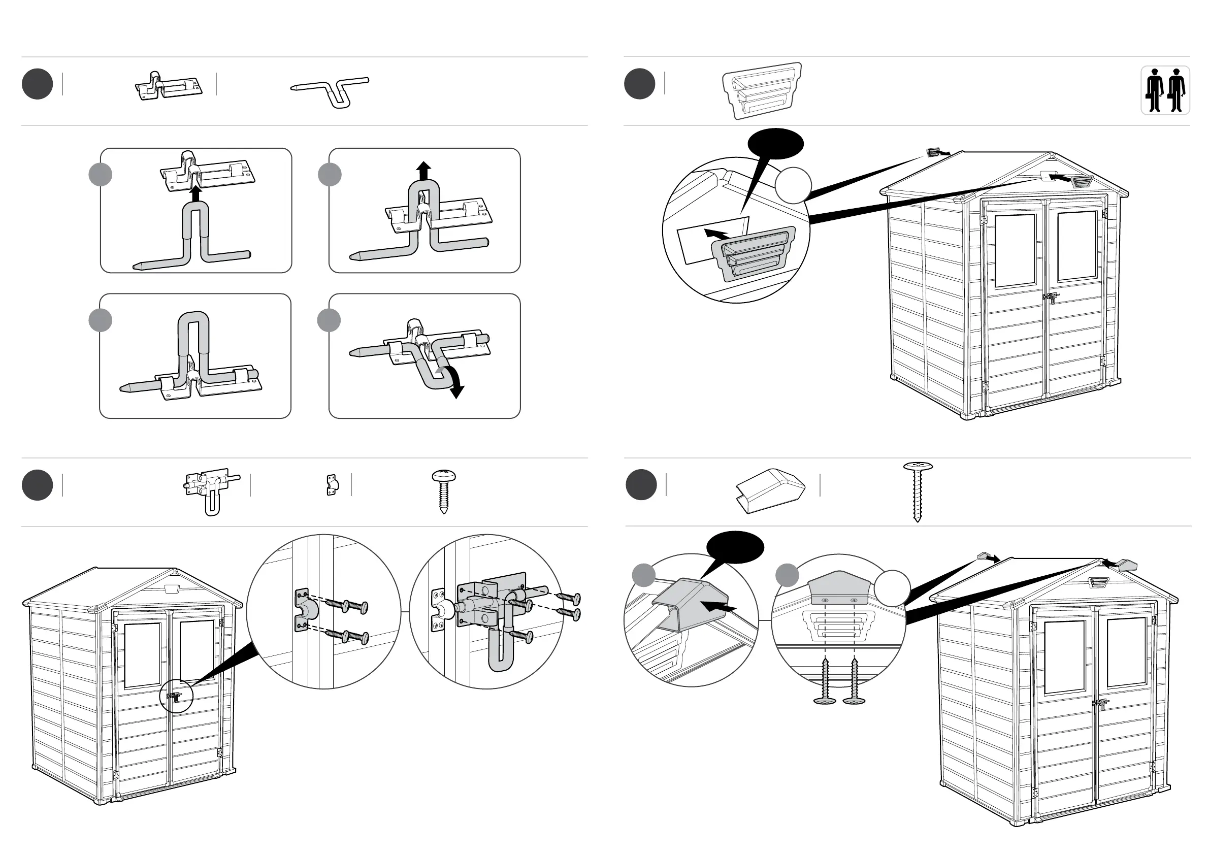 Keter MANOR 6x5SD - Window Mechanism and Assembly; Connecting Window Mechanism Parts; Securing Window Mechanism; Attaching Window Latches;Stops