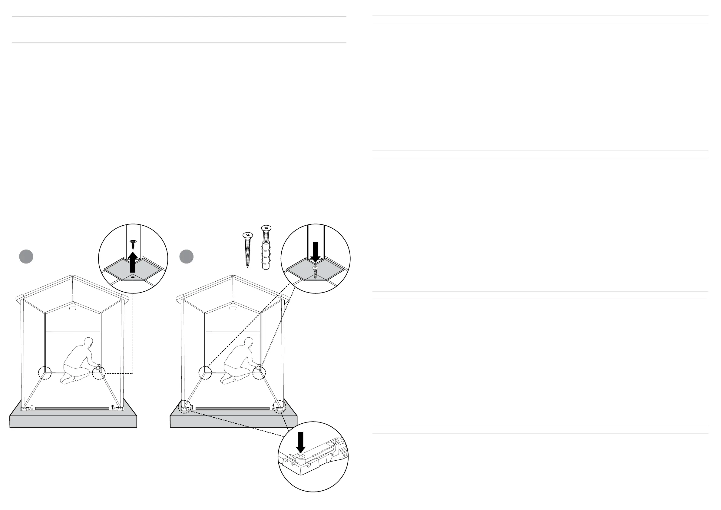 • Recomenda-se vivamente a fixação do abrigo a um objeto imóvel ou fixá-lo no chão fazendo furos no piso do abrigo