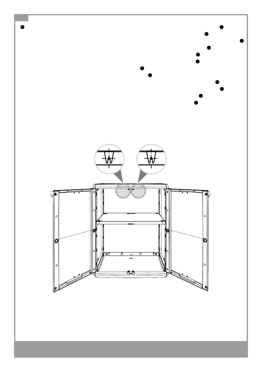 Fixer l’armoire au mur (vis et chevilles non incluses). Choisir la cheville en fonction de la surface d’appui.