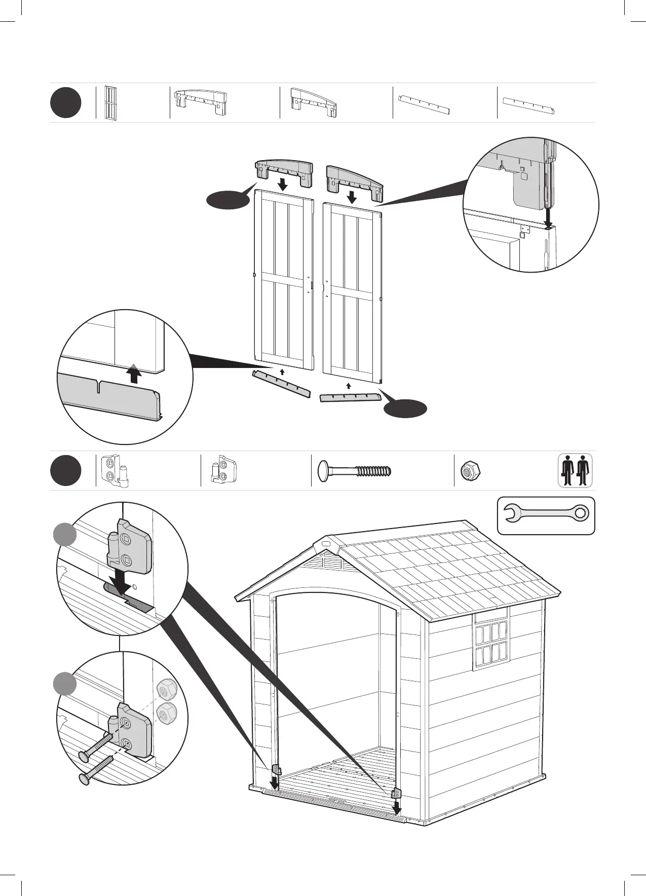 Keter PREMIER 757 - Door Assembly; Door Frame Preparation Steps; Door Hinge Attachment Steps