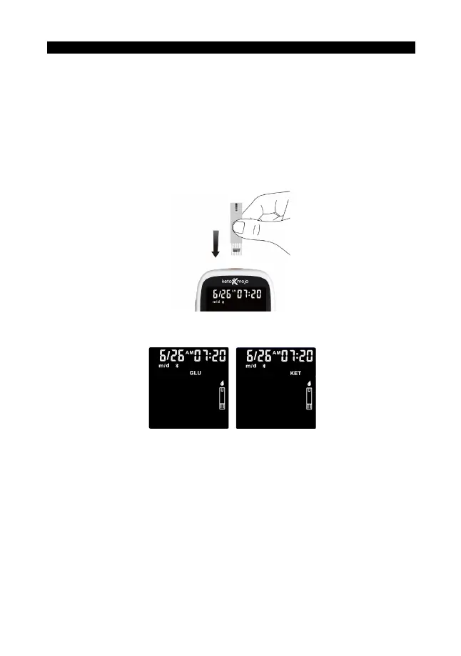 3. Insert the test strip into the meter in the direction of the arrow.
