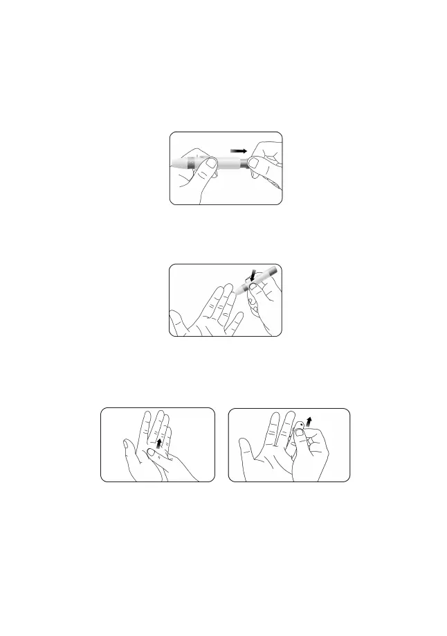 1. Pull the cocking device back to set the lancing device. You may hear a click to