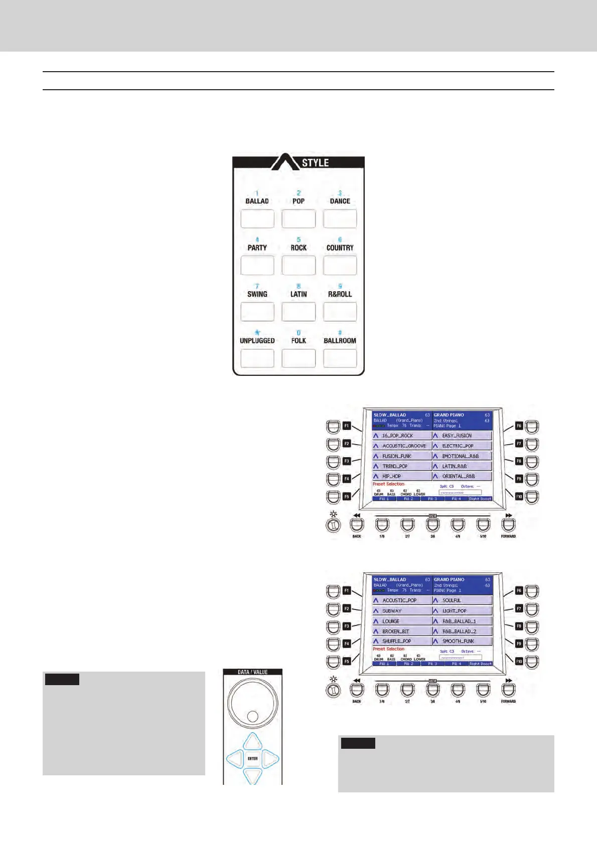 family button (e.g. BALLAD, POP and