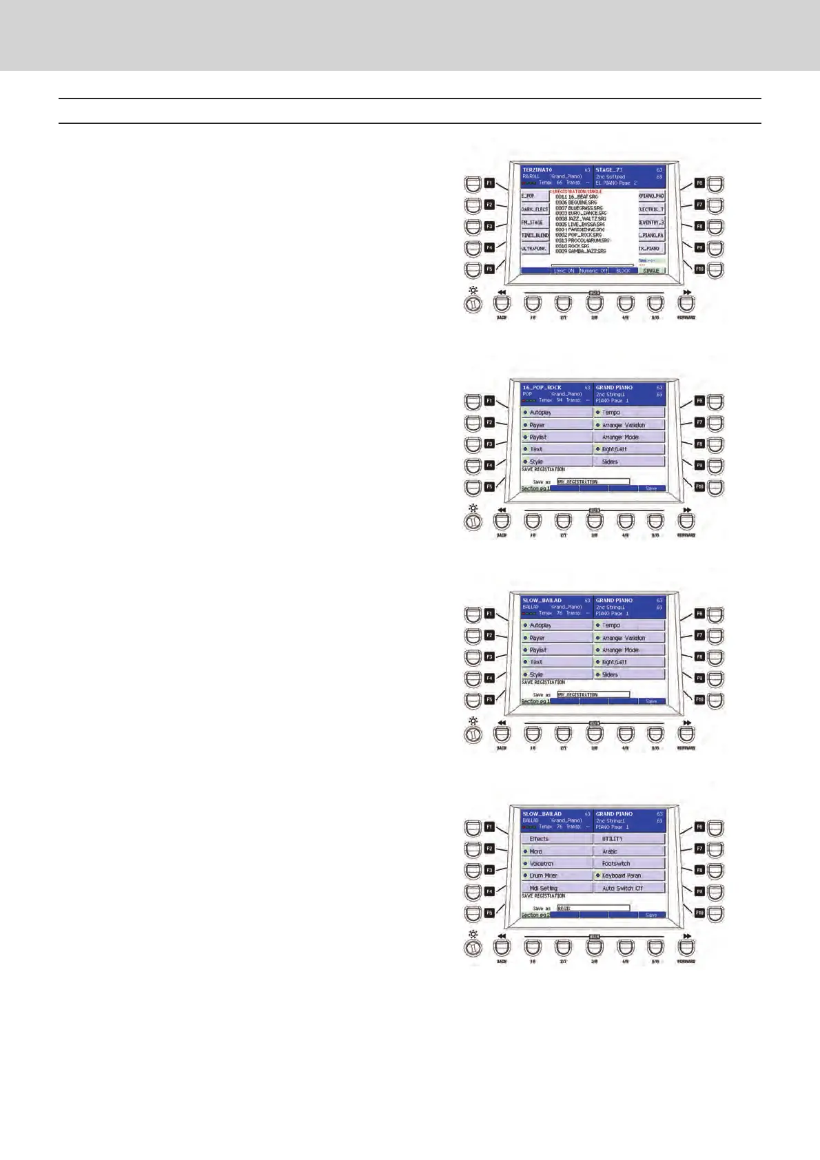 F8 - ARRANGER MODES: stores the Arranger