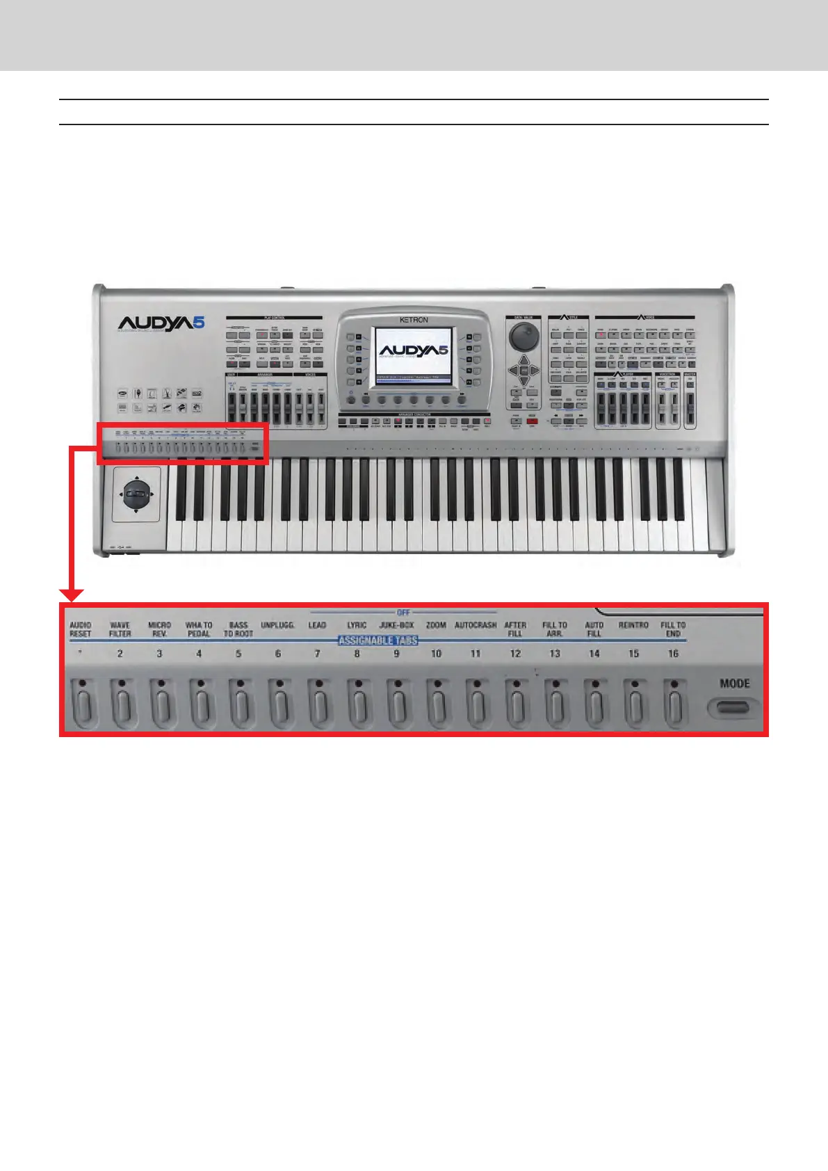In the various operating modes you can control the mute percussion sections, direct access to 16 shares of