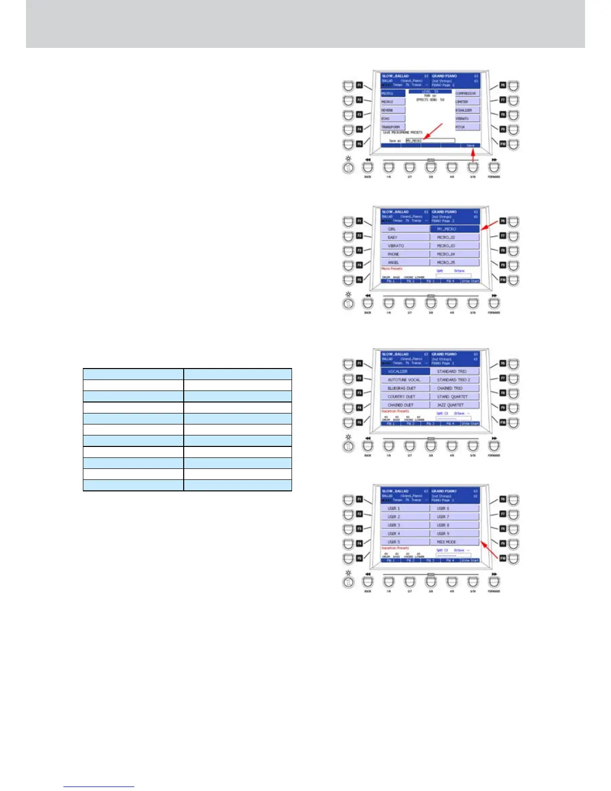 VOICETRON PRESETS pages.