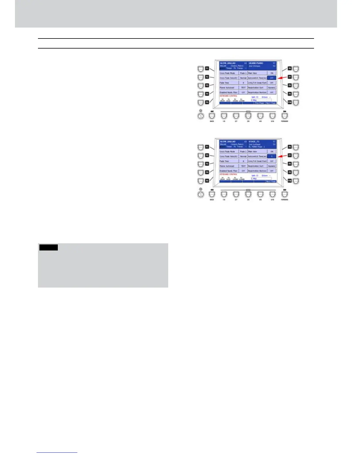 Press the F7 button to select AUTOSWITCH TIME 5.