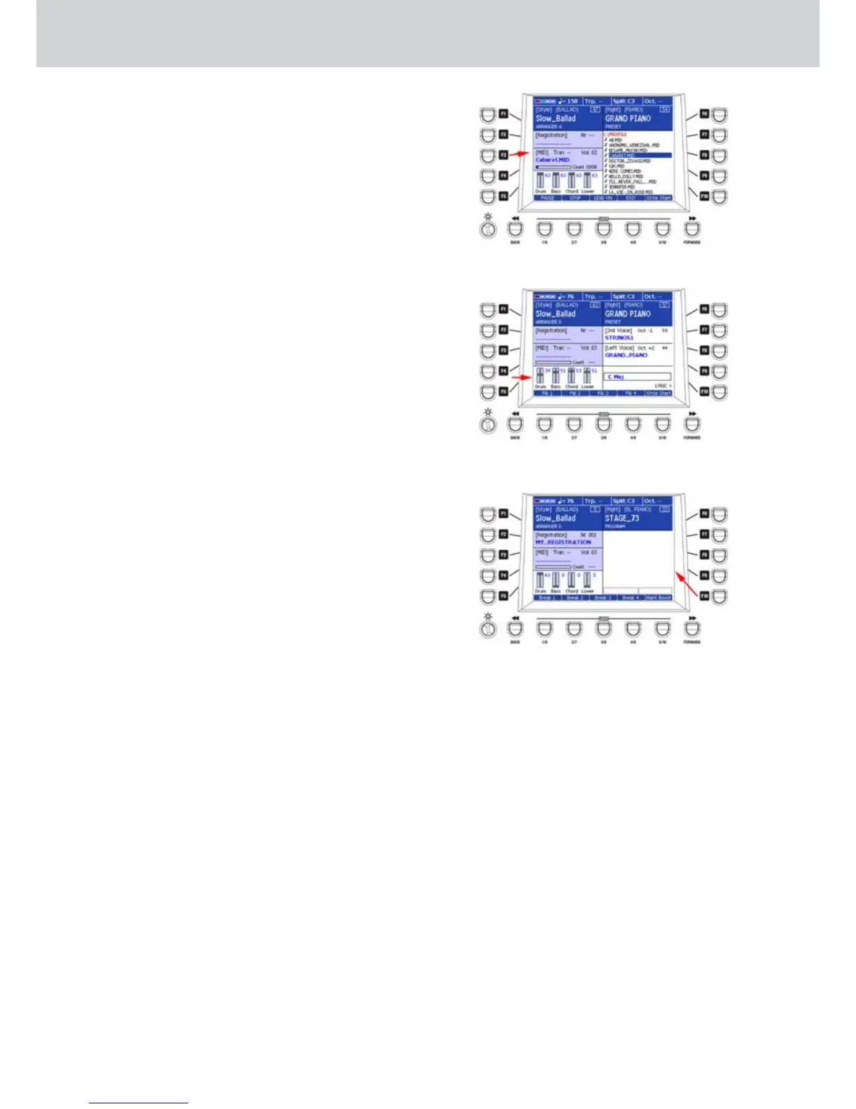 PROGRAM, DRAWBARS or INSTRUMENT
