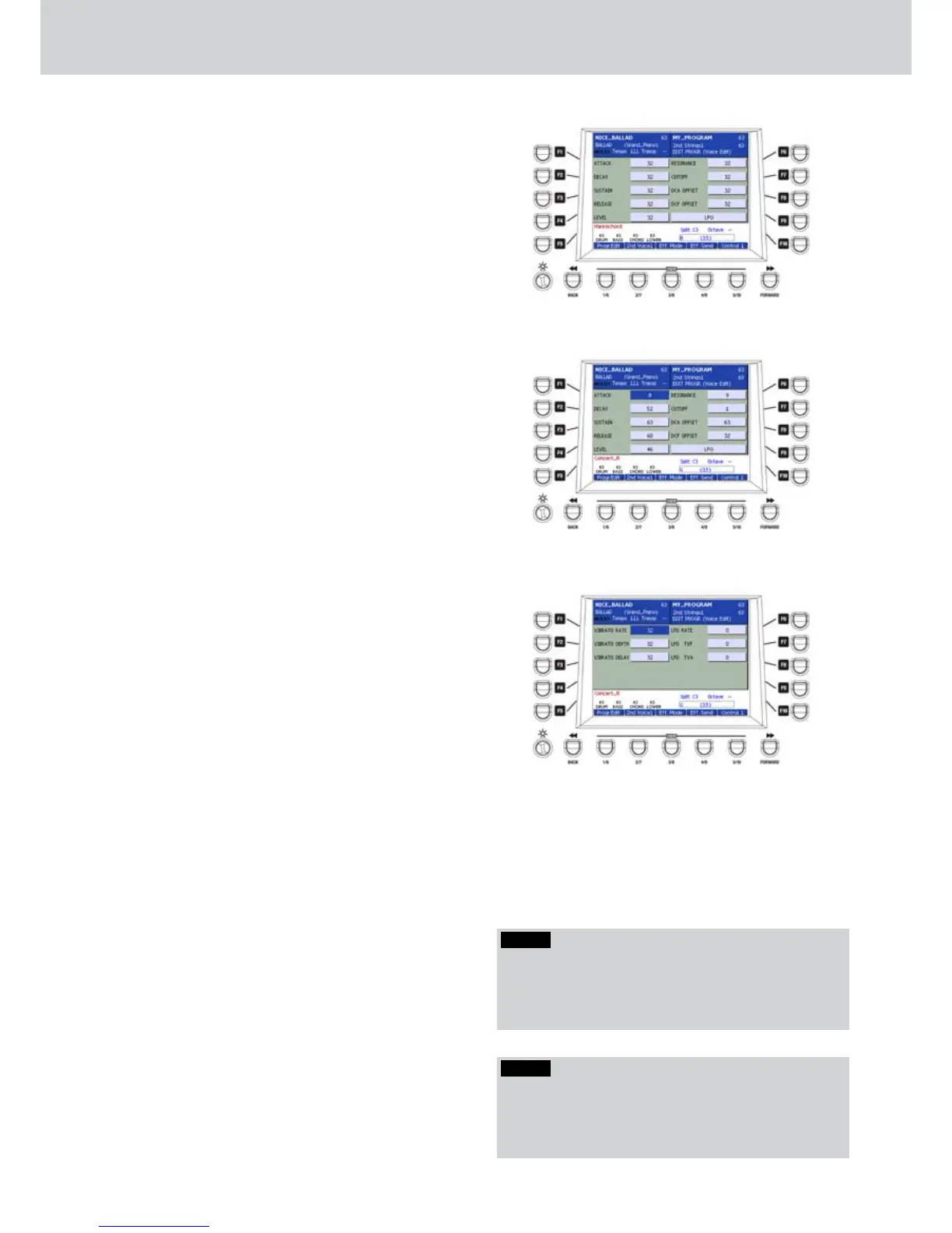 F2–VIBRATO DEPTH: vibrato depth.