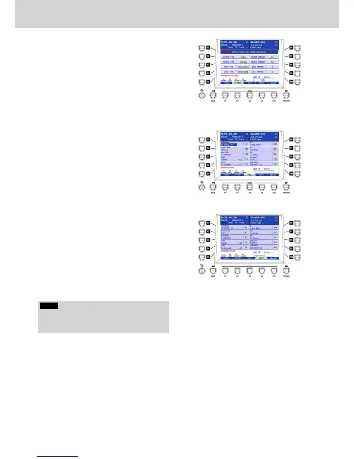 style by using the F1-F10 buttons. The “muted”