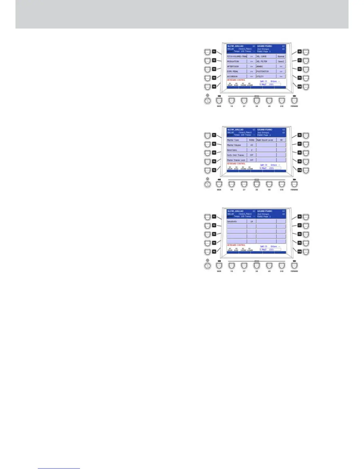 F1– Master Tune: master tuning of the keyboard (440