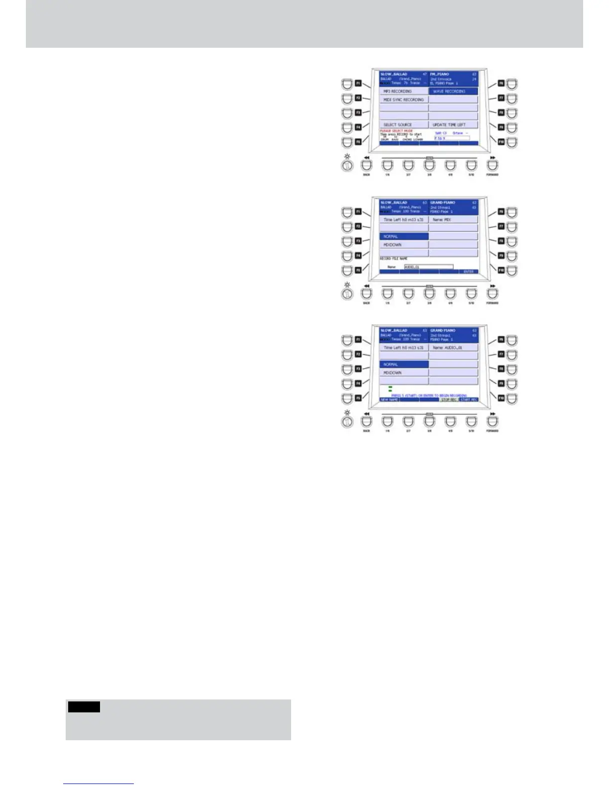F6- WAVE RECORDING: WAV file recording.