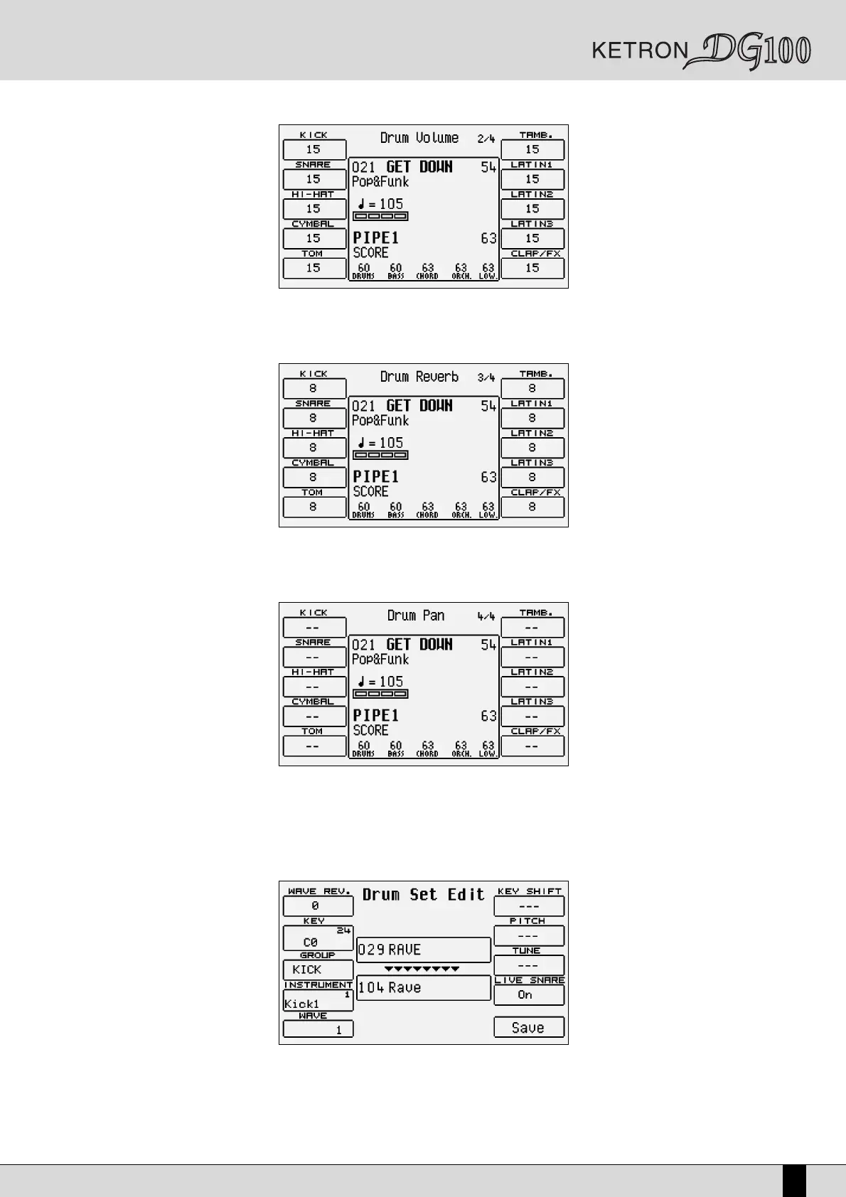 The DG100 makes it possible to create and program a Drum Set to be stored among the User Drum Sets and to be used in the styles. If you wish