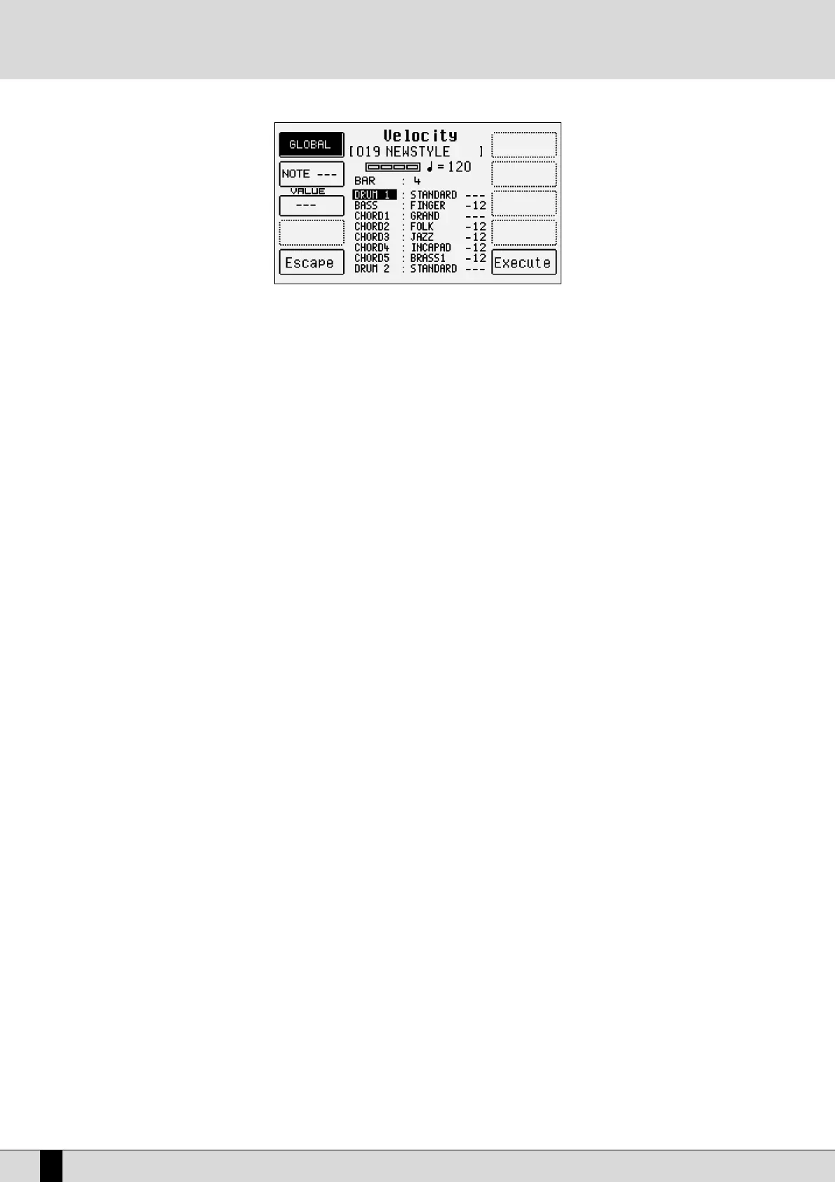 For the lead tracks (Bass, Chord 1, 2, 3, 4 and 5) the timbres of the GM bank can be used and of the USER VOICE bank for those you have creat-