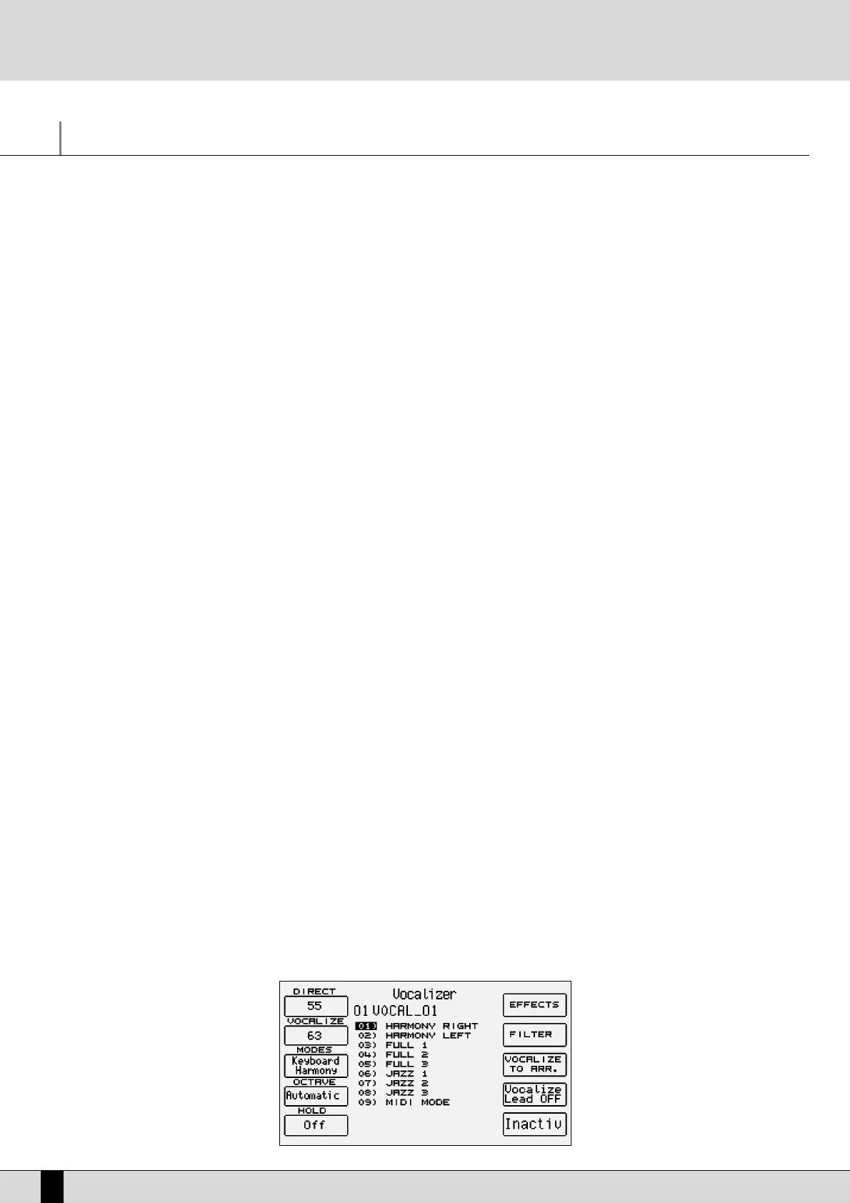 Keyboard Harmony, Fixed Interval and Vocal Effects has been selected. Each one of these modes includes different algorithms that will be dis-