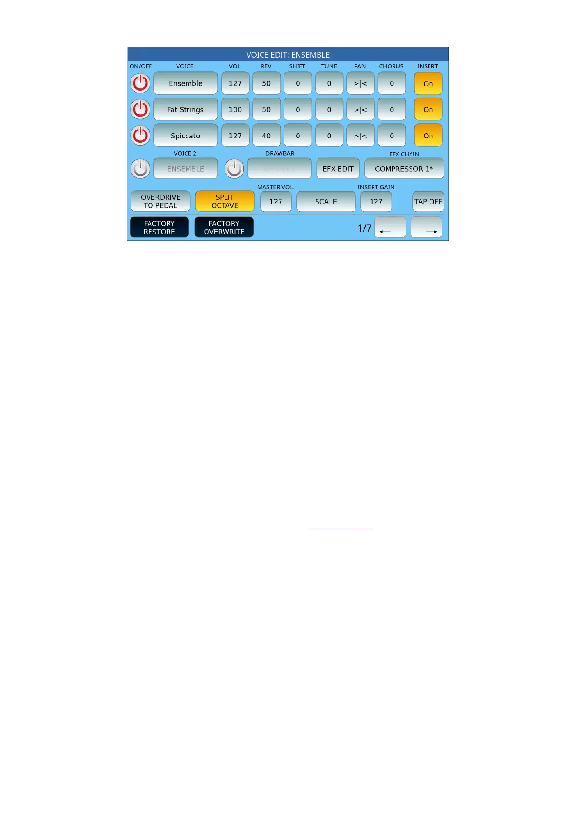 • ON/OFF: Activate or not the oscillator to which a Voice is assigned.