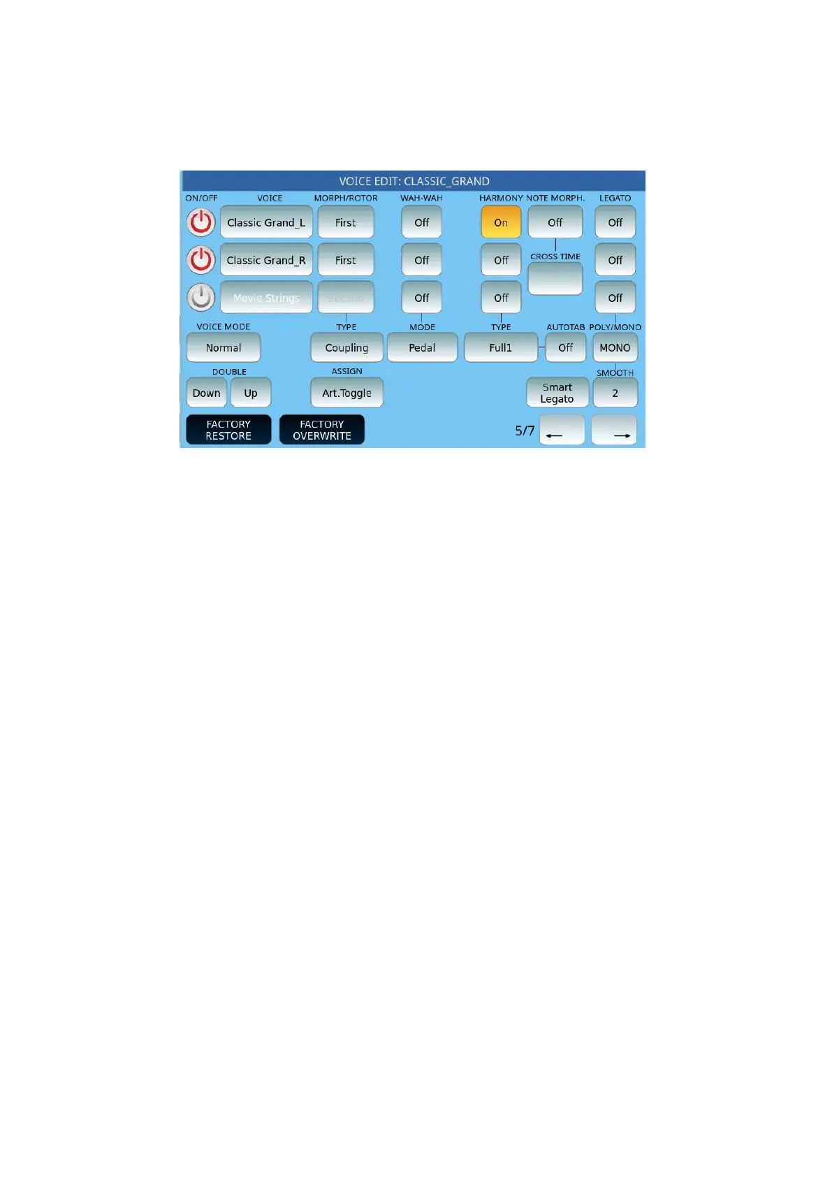 o Sustain: Press and hold the pedal to activate the Second voice: upon