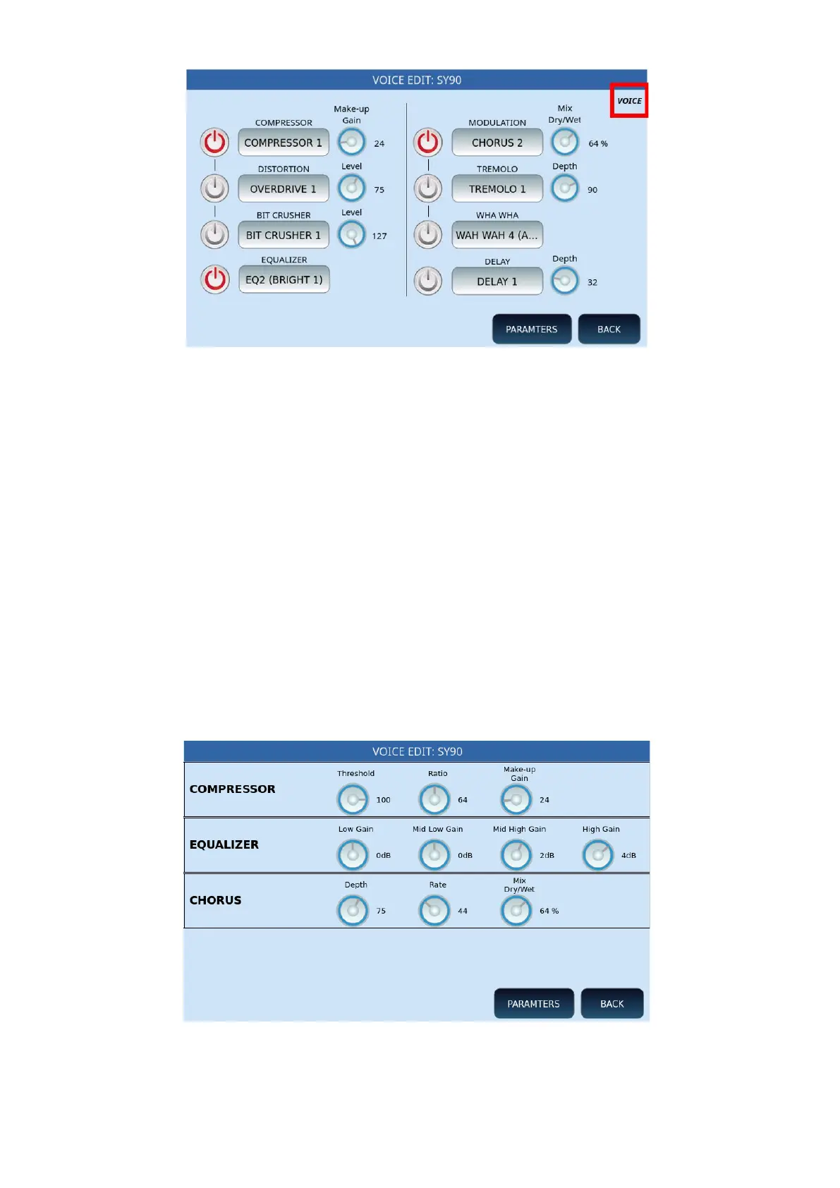 • COMPRESSOR, DISTORTION and BIT CRUSHER can be selected alternatively and, for