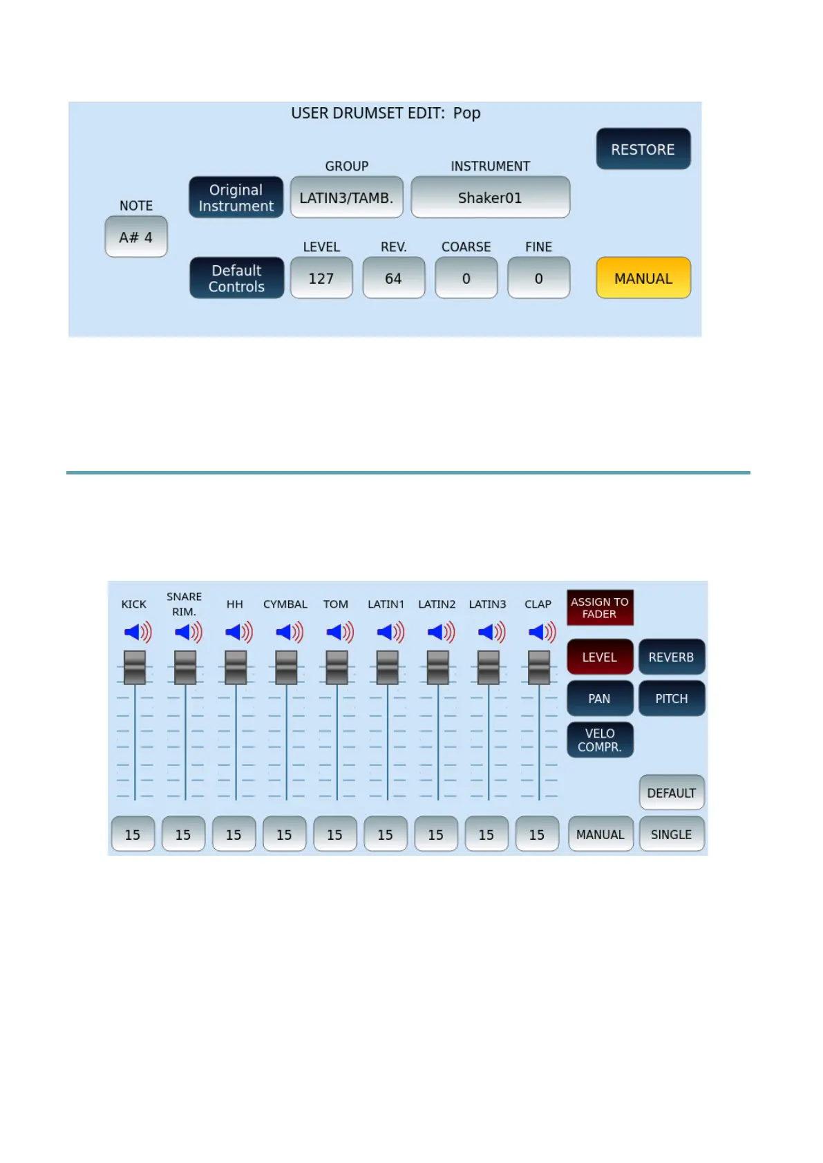 Press the DRUM MIXER button on the front panel to access the function that allows you to