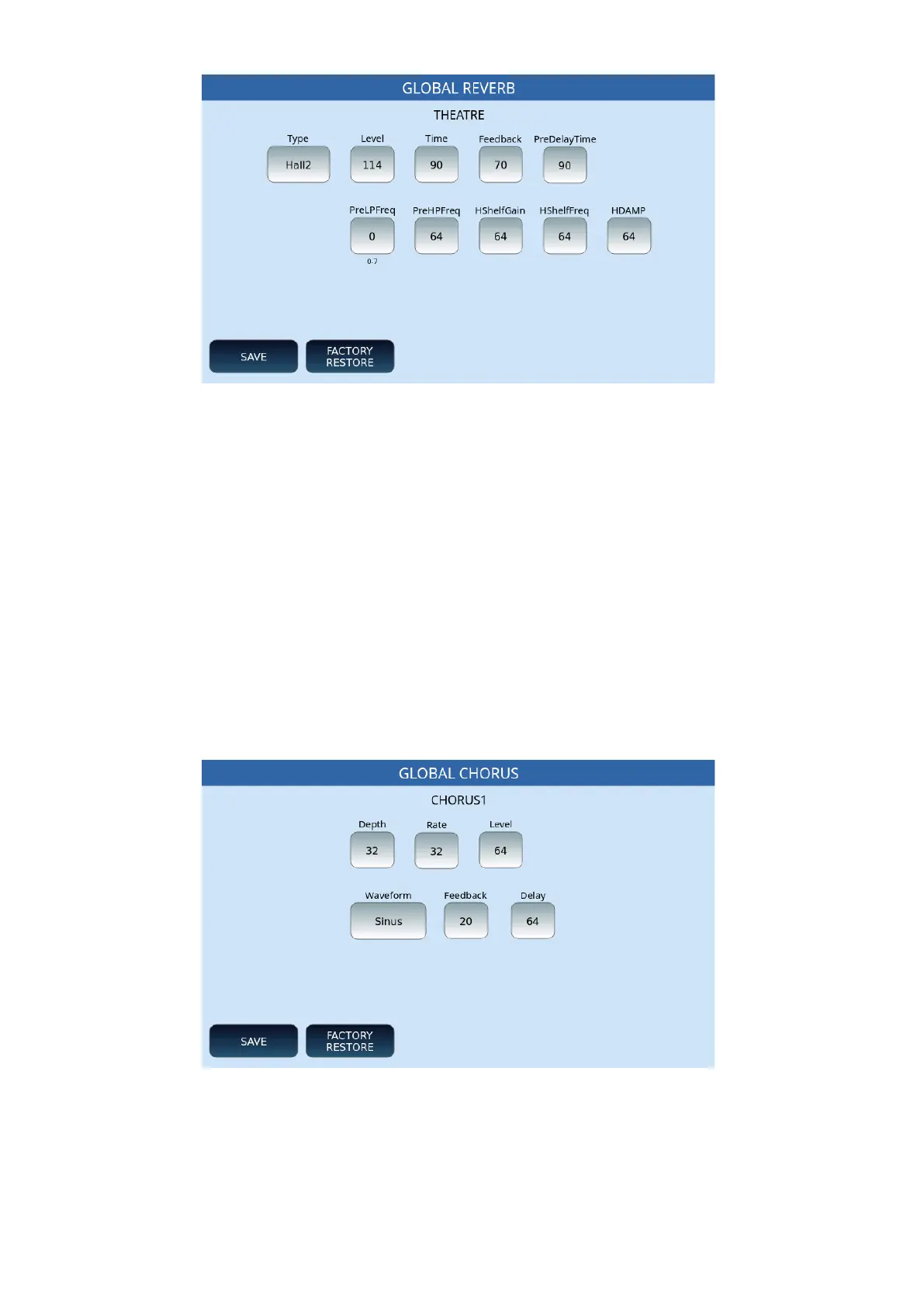 GLOBAL CHORUS, you get this page where you can act on the parameters of the effect you