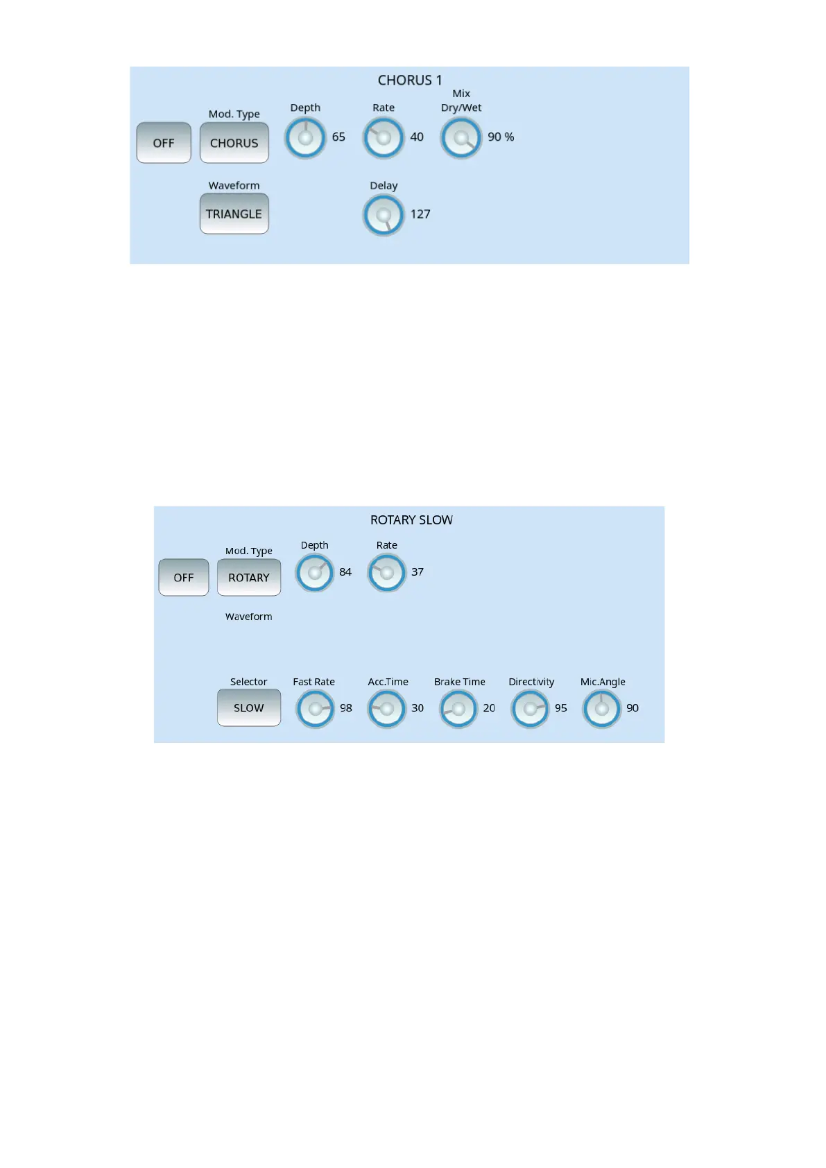 • Mod. Type: in addition to CHORUS, VIBRATO, PHASER, FLANGER are available.