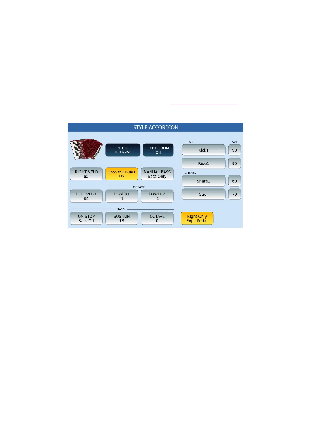 • RIGHT VELOCITY: Function dedicated to accordions equipped with dynamic