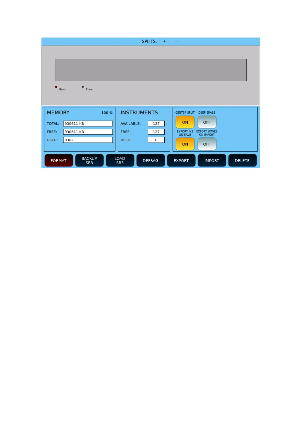 • FORMAT: This button formats the memory area dedicated to the sampler and clears