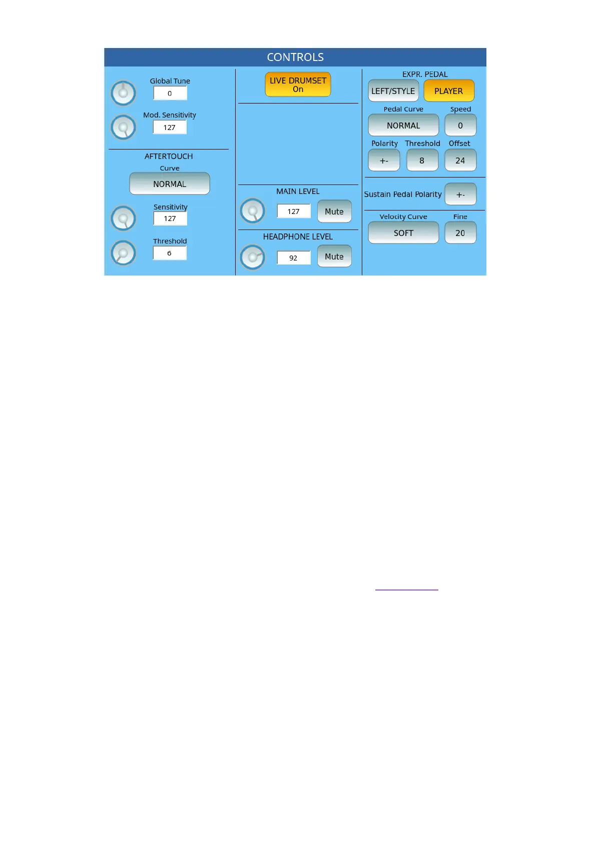 • Curve: set the AFTERTOUCH curve values between NORMAL, OPEN, and CLOSE.