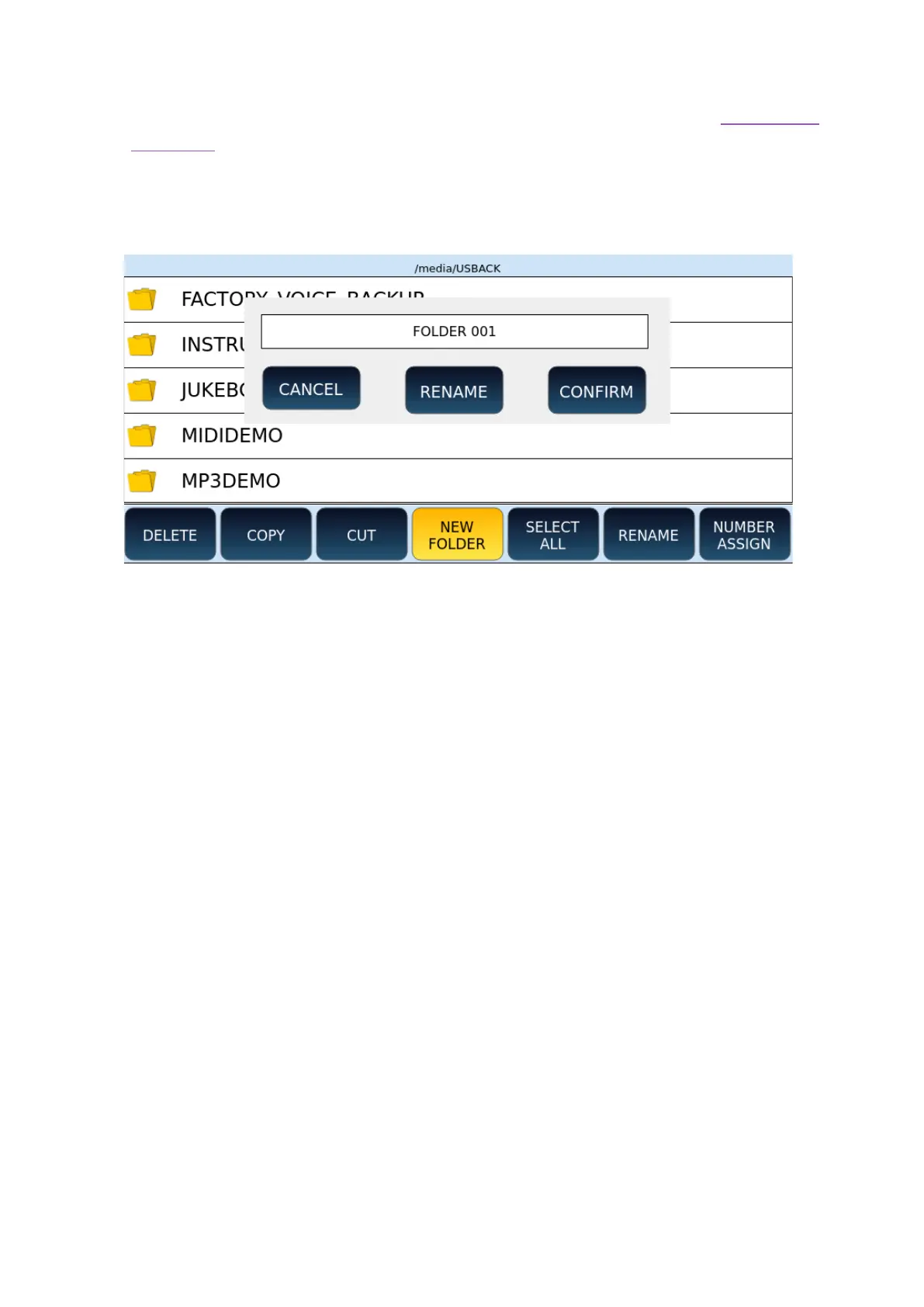 4. Press the CANCEL button on the screen to cancel the new folder creation