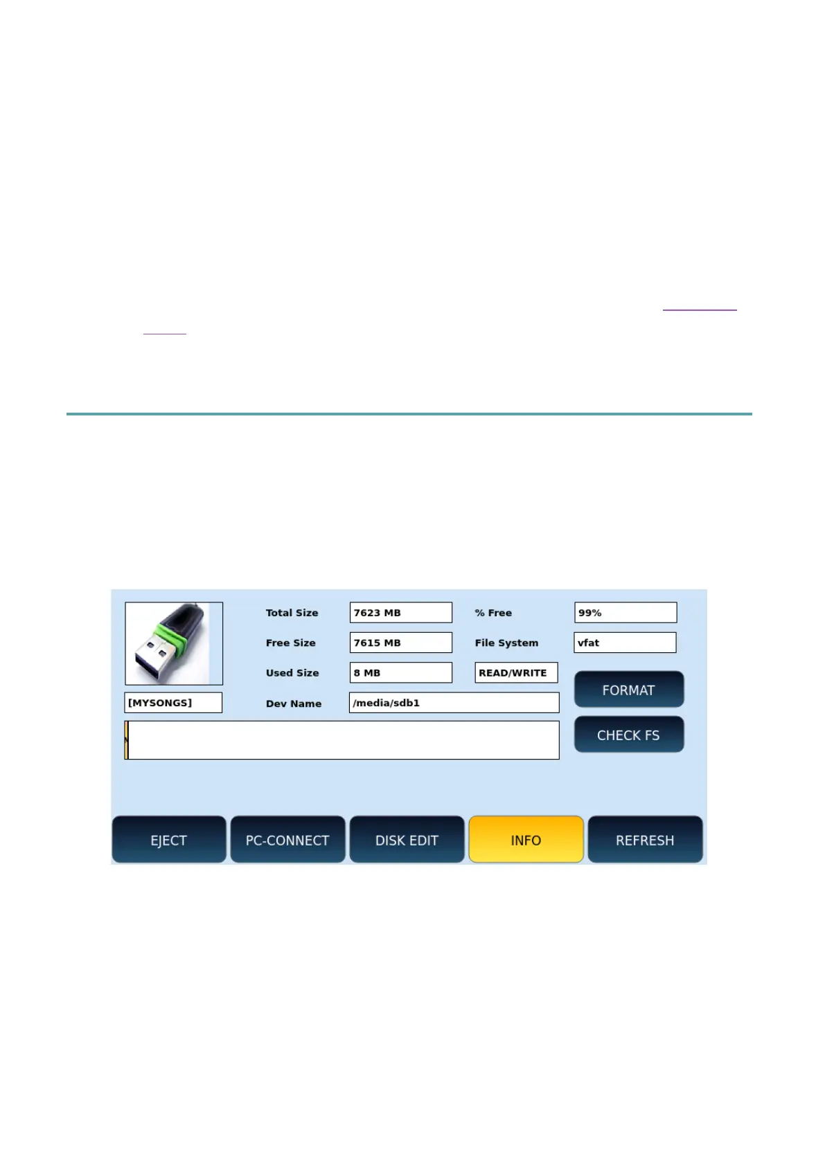 With INFO you can check the technical data of storage devices such as total space, free and