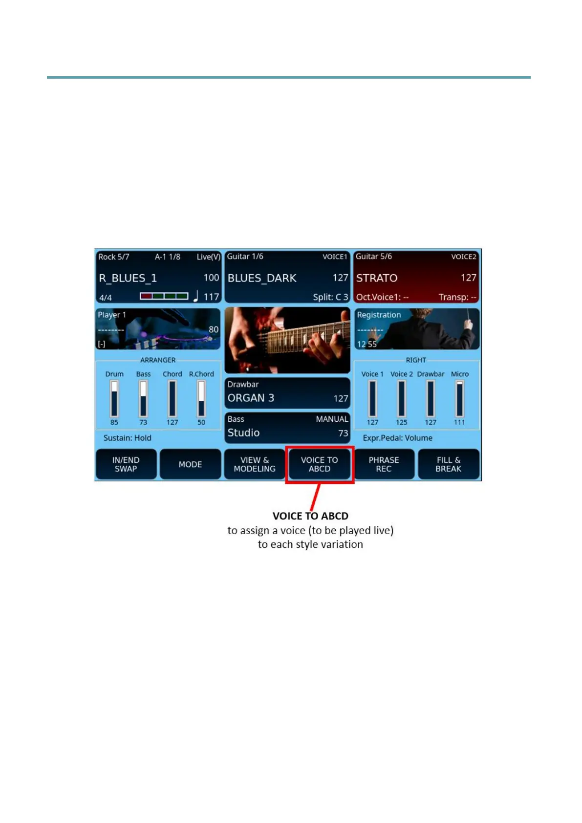 We have seen above how to set the sounds for the parts to be played with the keyboard.