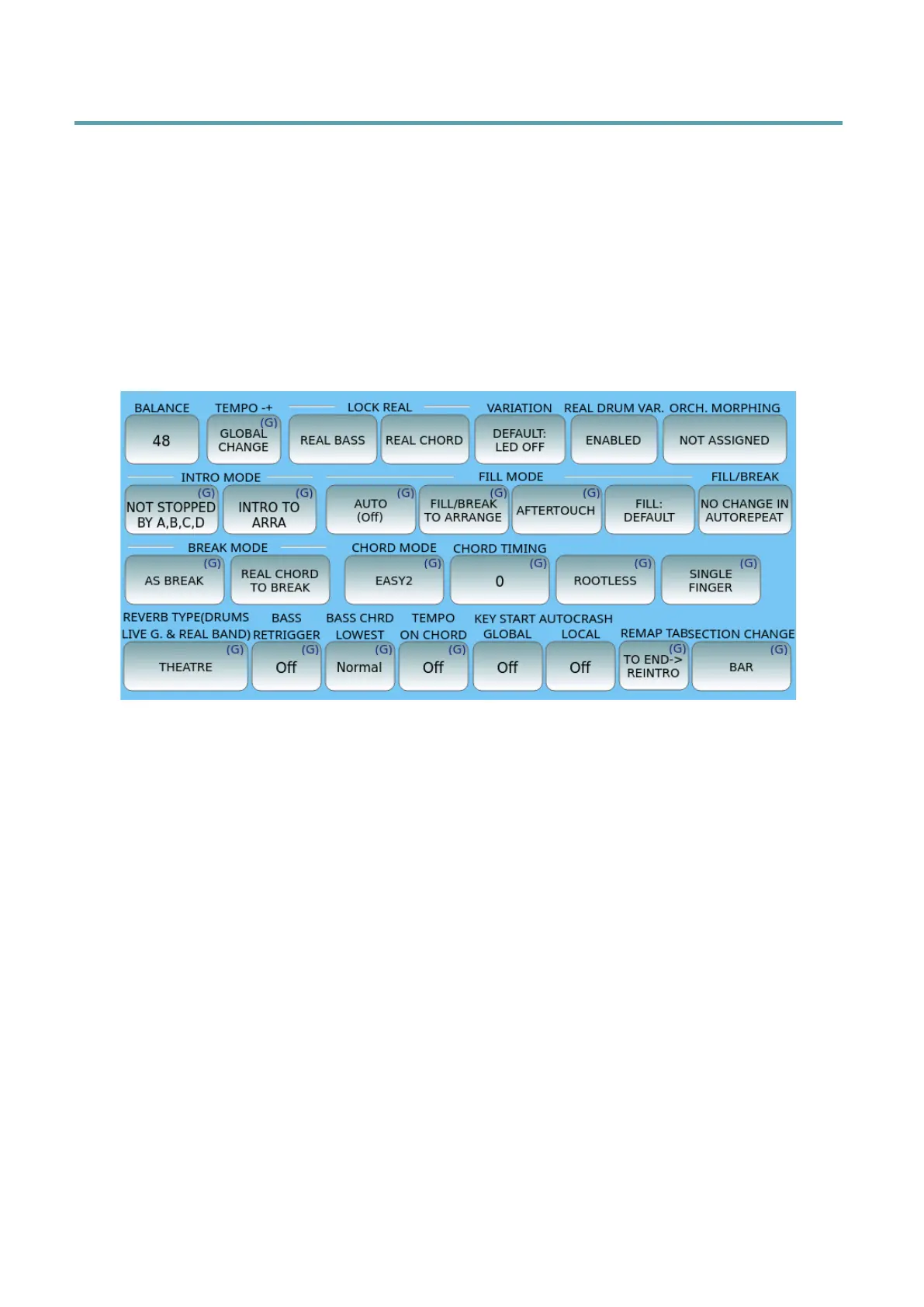 • BALANCE: represents the volume of the arranger section, which is a value between 16