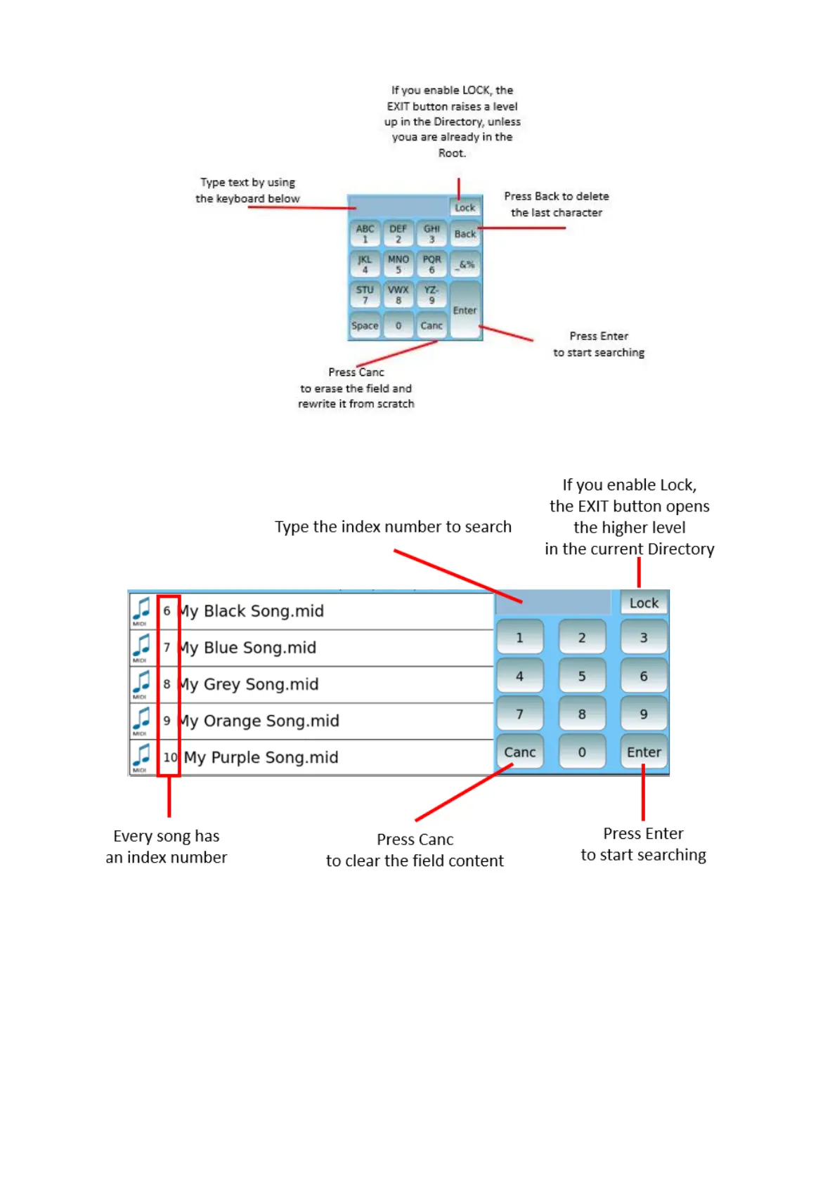Press the SEARCH button a second time to enable the search by numerical index.