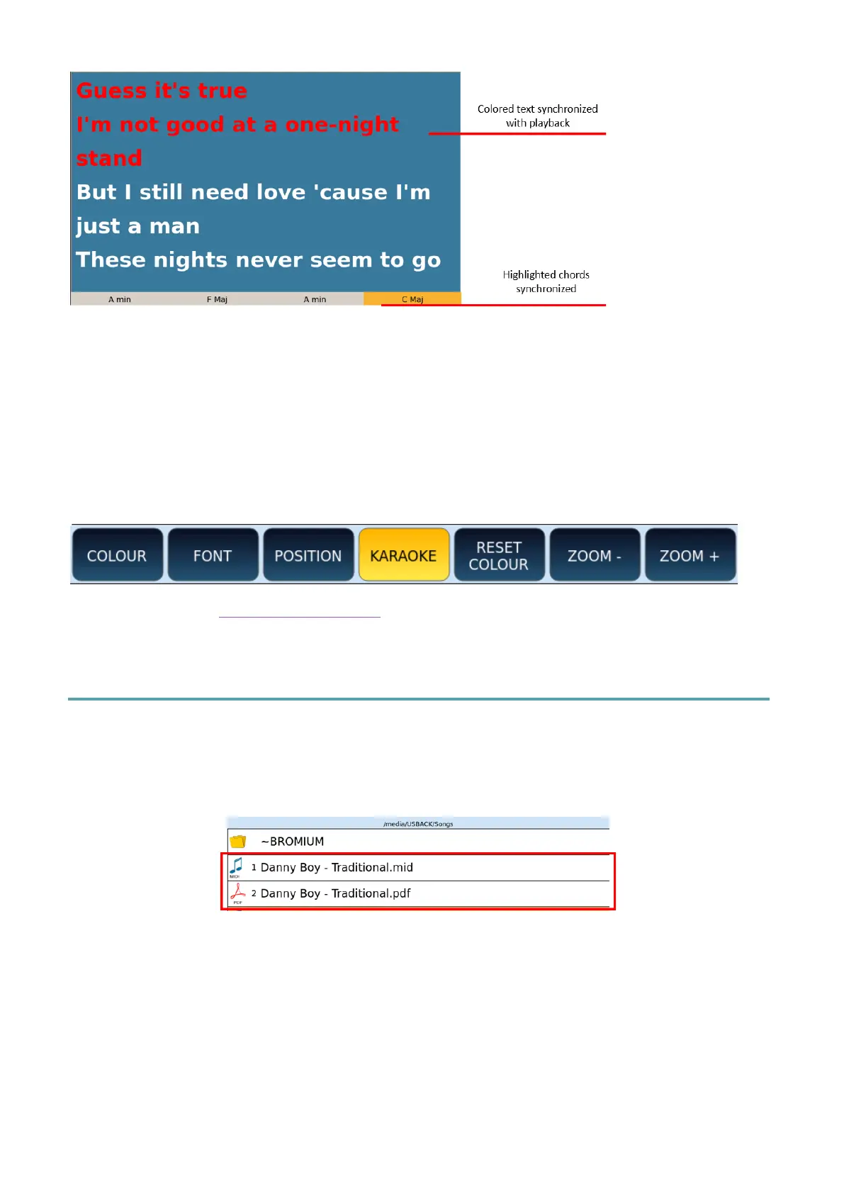 The instrument recognizes chord meta events in MIDI files; in audio files with lyrics, the