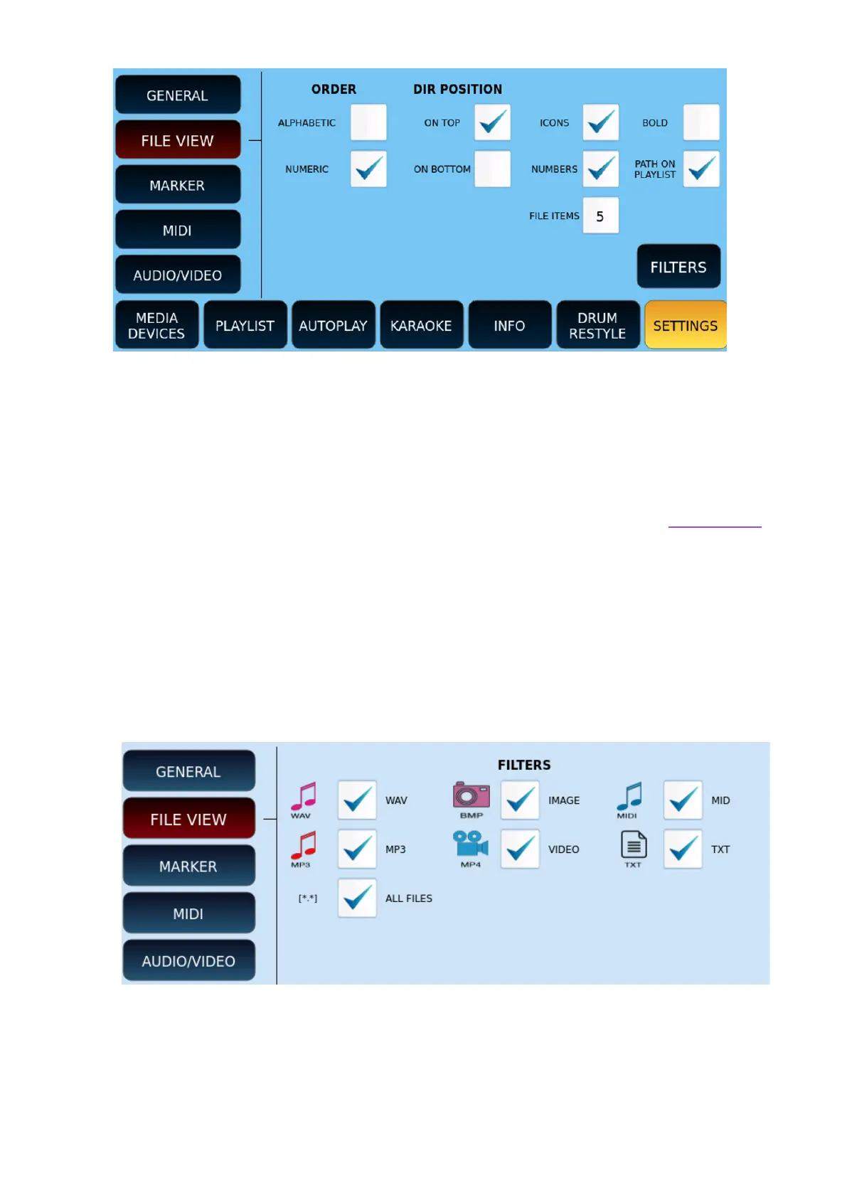 • FILE ITEMS: defines the number of files and folders to be displayed (from 4 to 12) at a