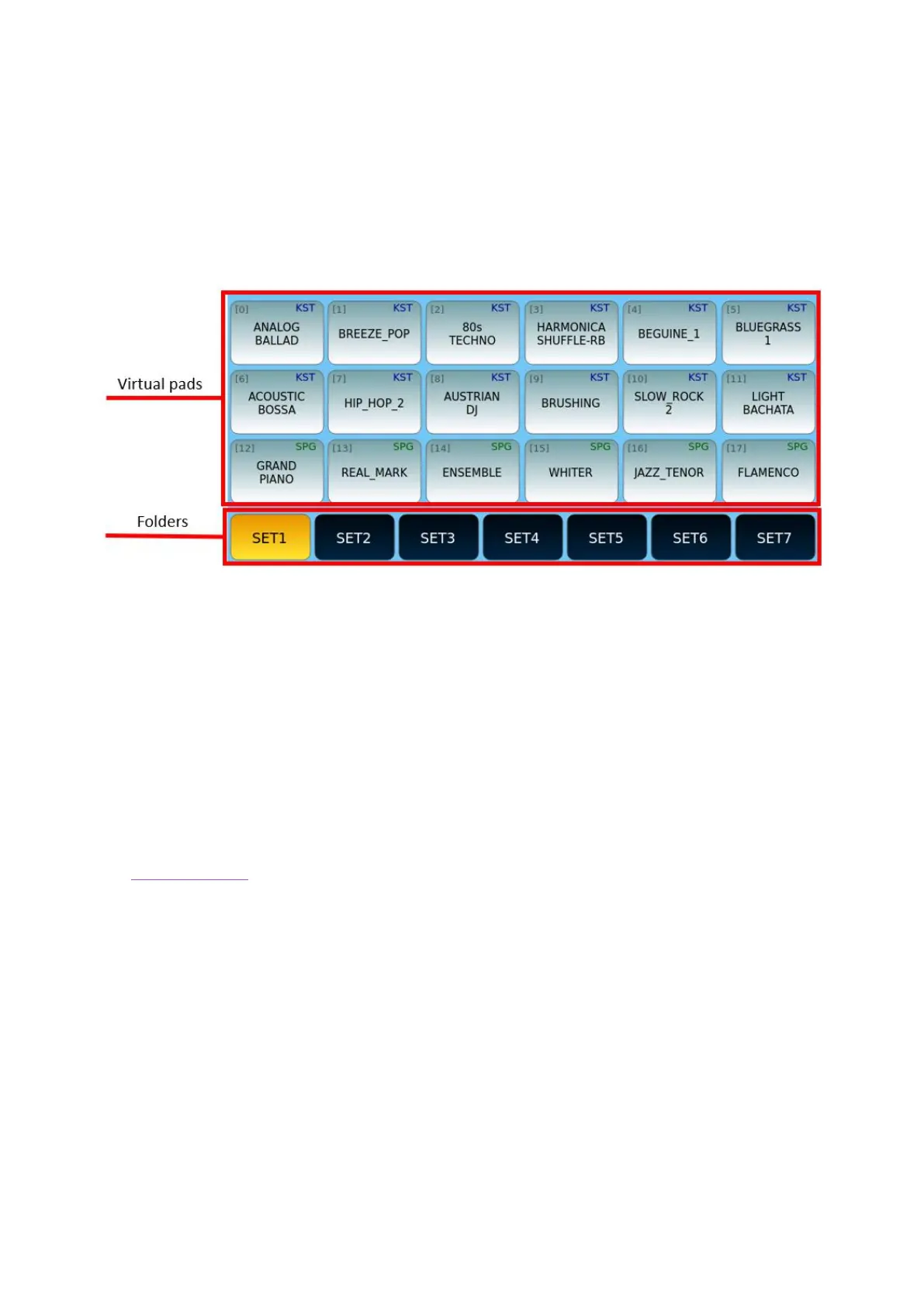 • The virtual Pads show the names of the files included in a Set collection. They are