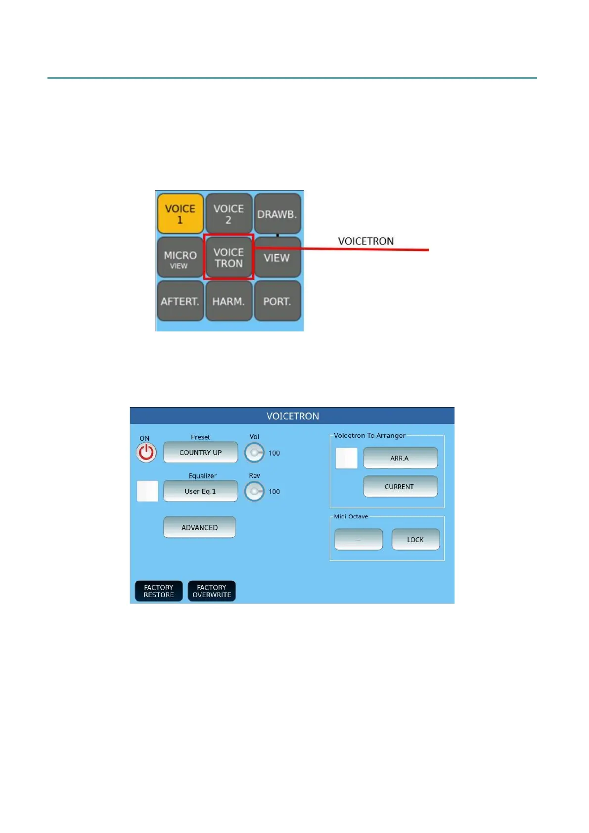 • Preset: Touch this part of the screen to select a preset Voicetron memory from