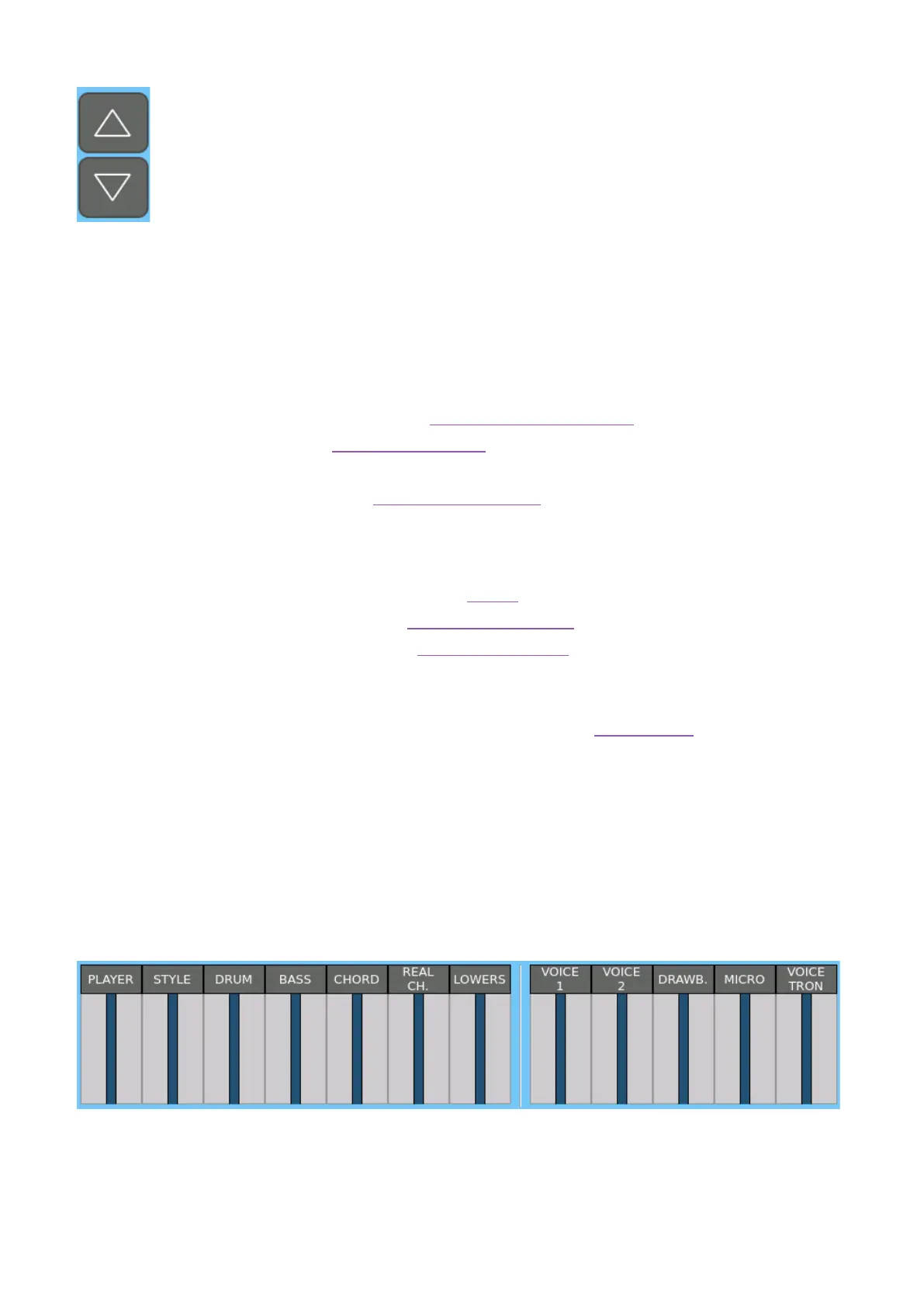 • Move between the elements of a list (styles, voices, audio and MIDI tracks,