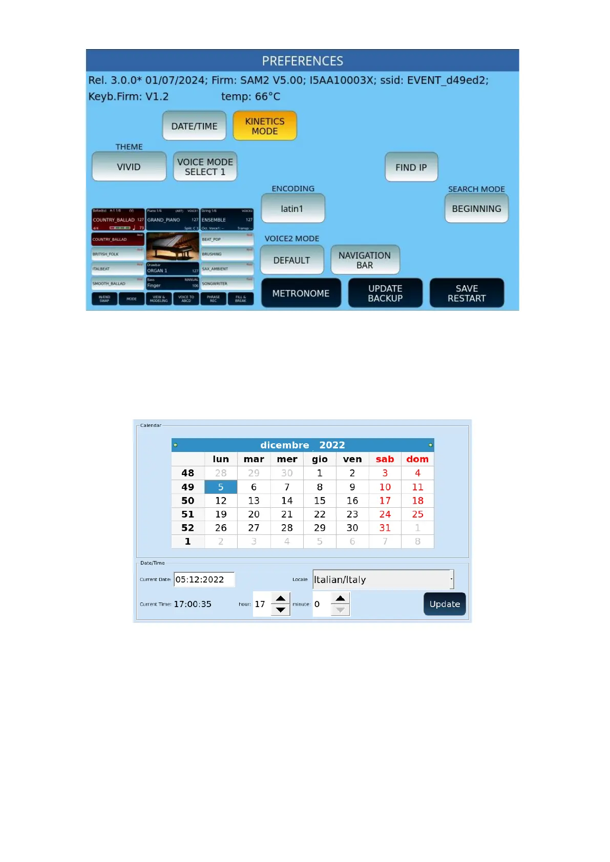 • THEME: Choose the theme of the touchscreen functions (a preview helps you