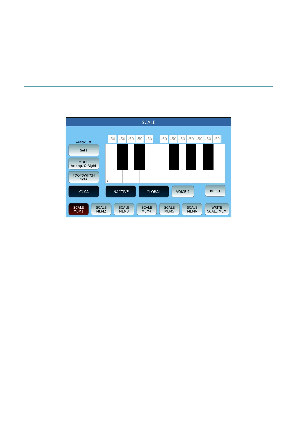 • Arabic Set: you can save 16 different settings for 6 scales (SCALES MEM1-6).