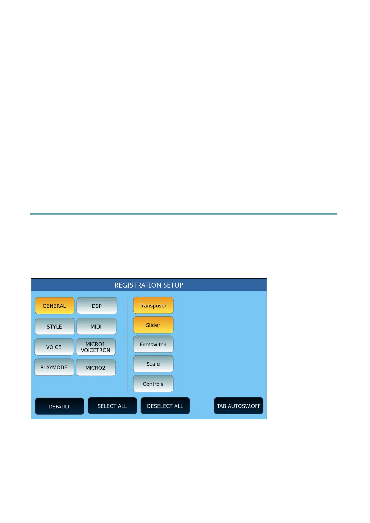 Registrations save all the instrument settings but, when they are called, they can keep some