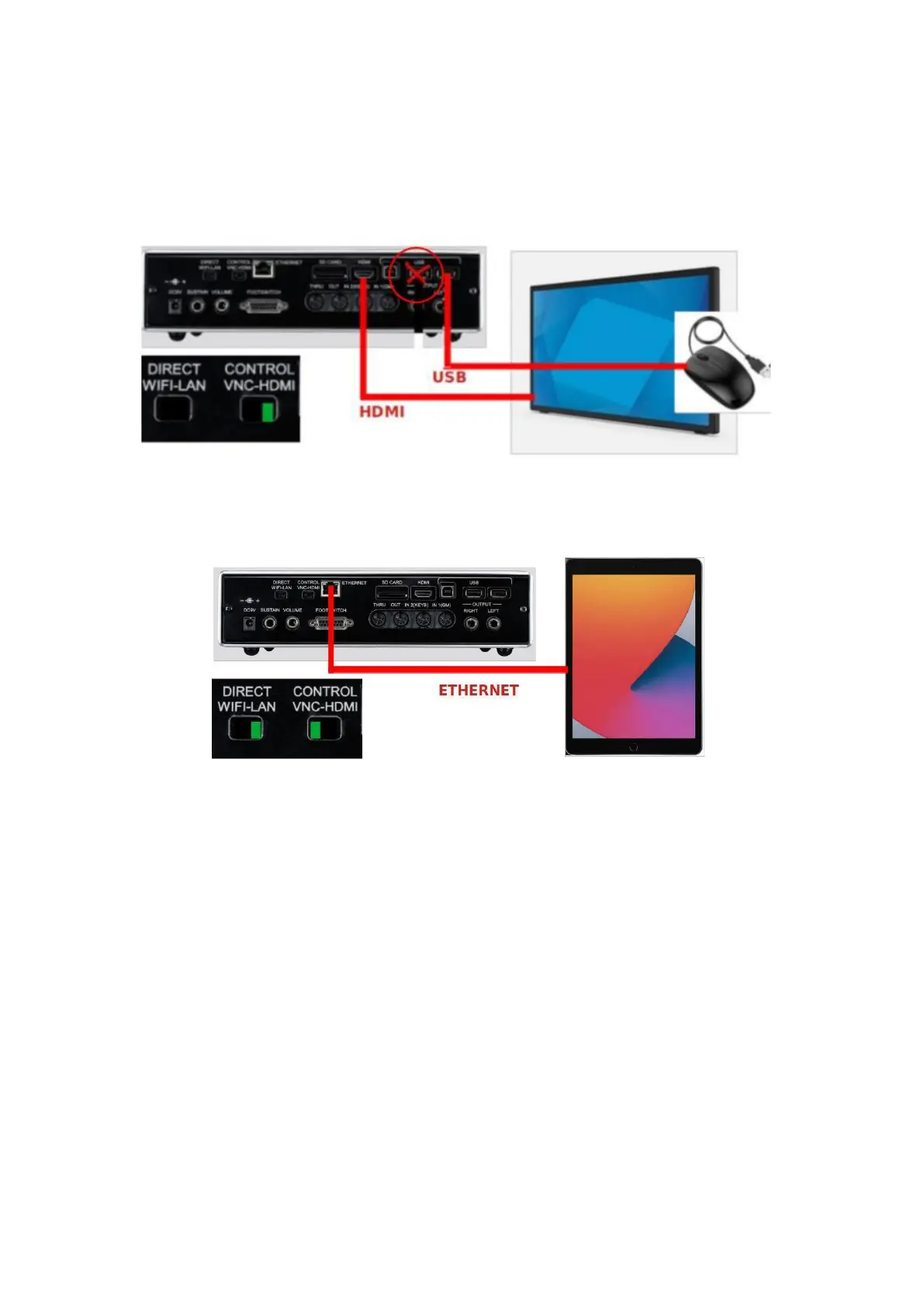 2. Set the VNC/HDMI switch to VNC and the WIFI/LAN switch to LAN.