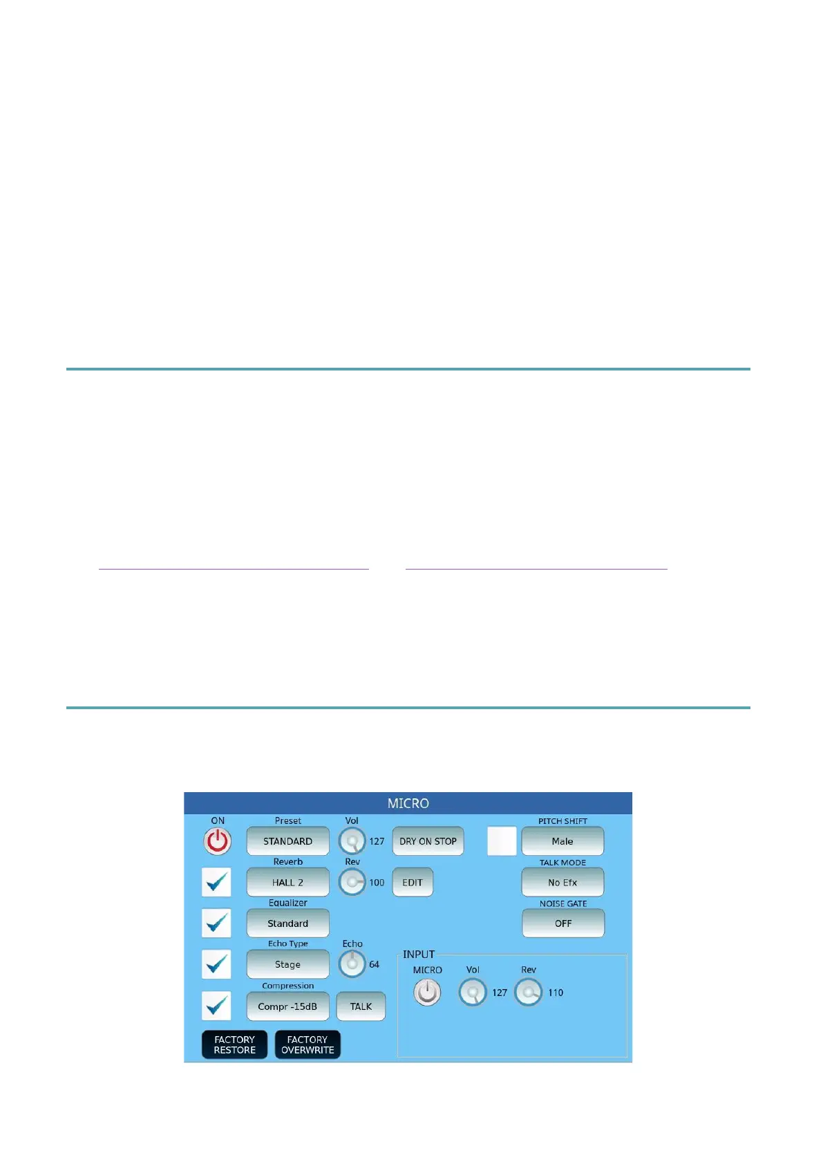 To access microphone signal customization, press and hold the MICRO button on the panel
