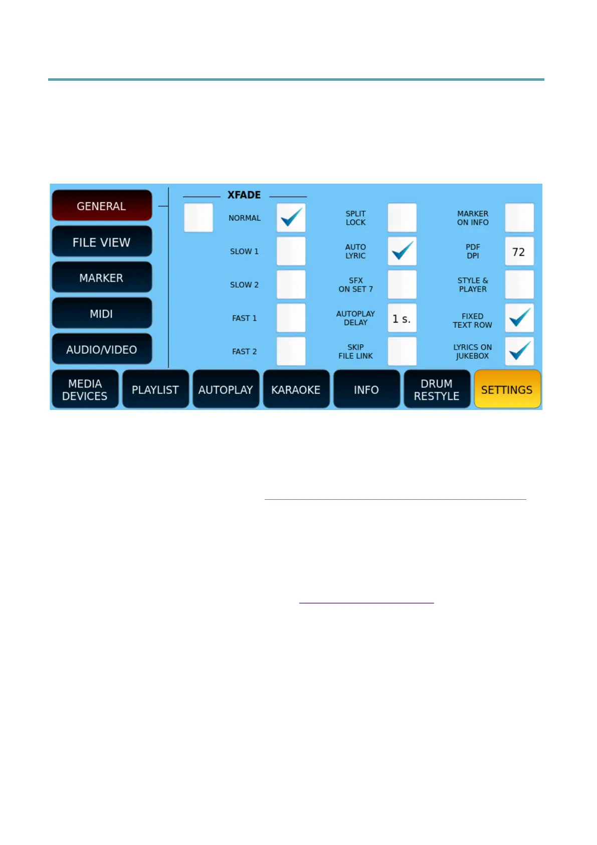 • LYRICS ON JUKEBOX: allows the visualization of lyrics and PDF files in the JUKEBOX