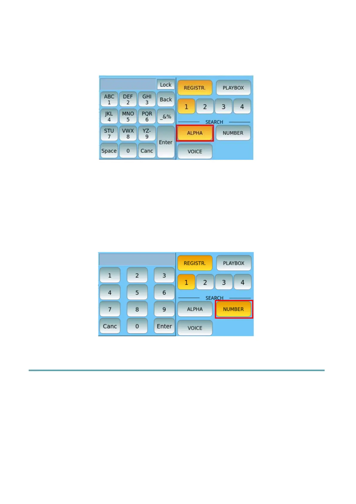 NUMBER button: you can type the number corresponding to the Registration. Obviously, it