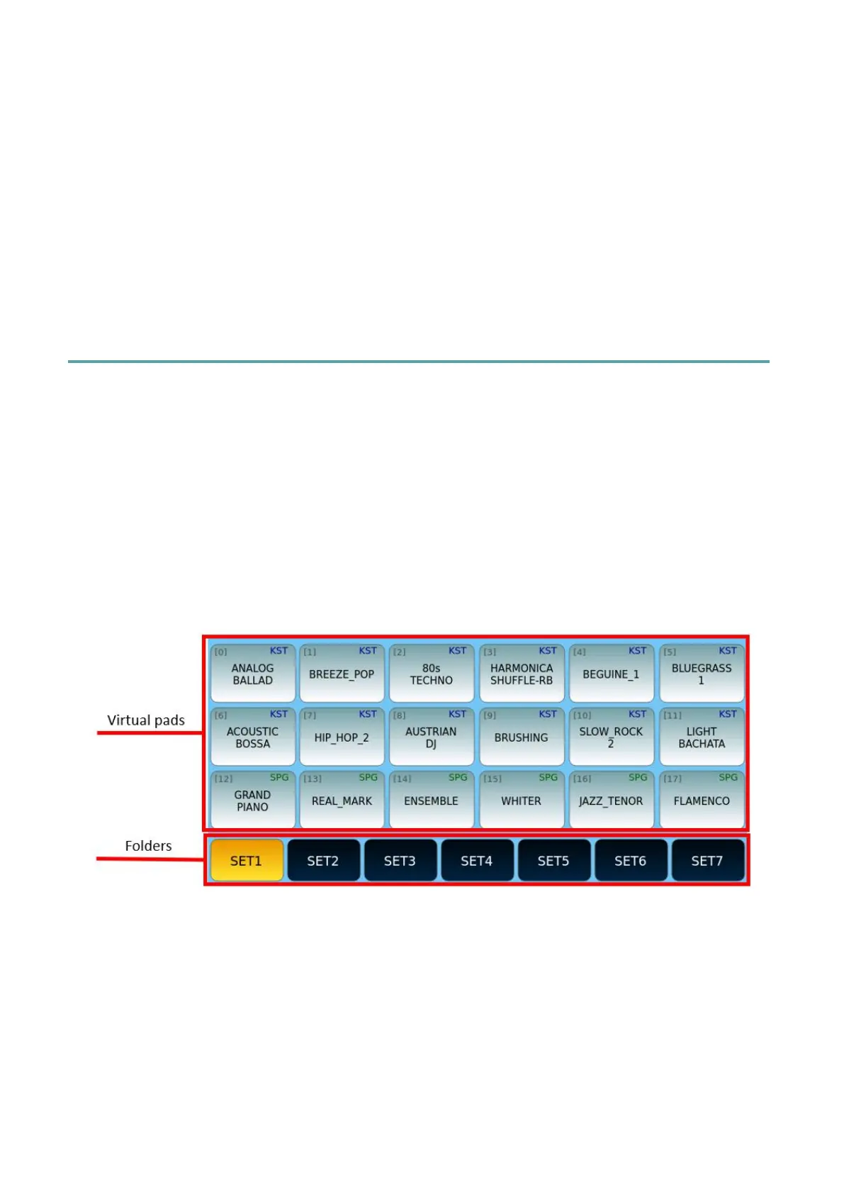 • The virtual Pads show the names of the files included in a Set collection. They are